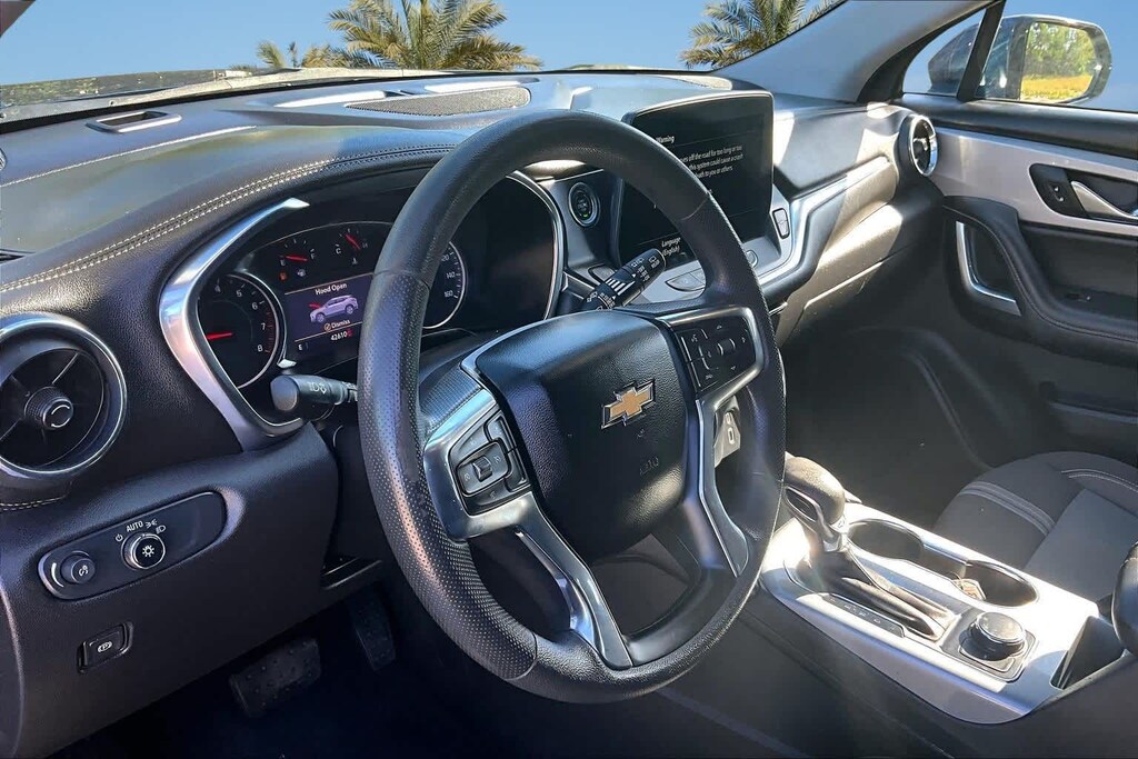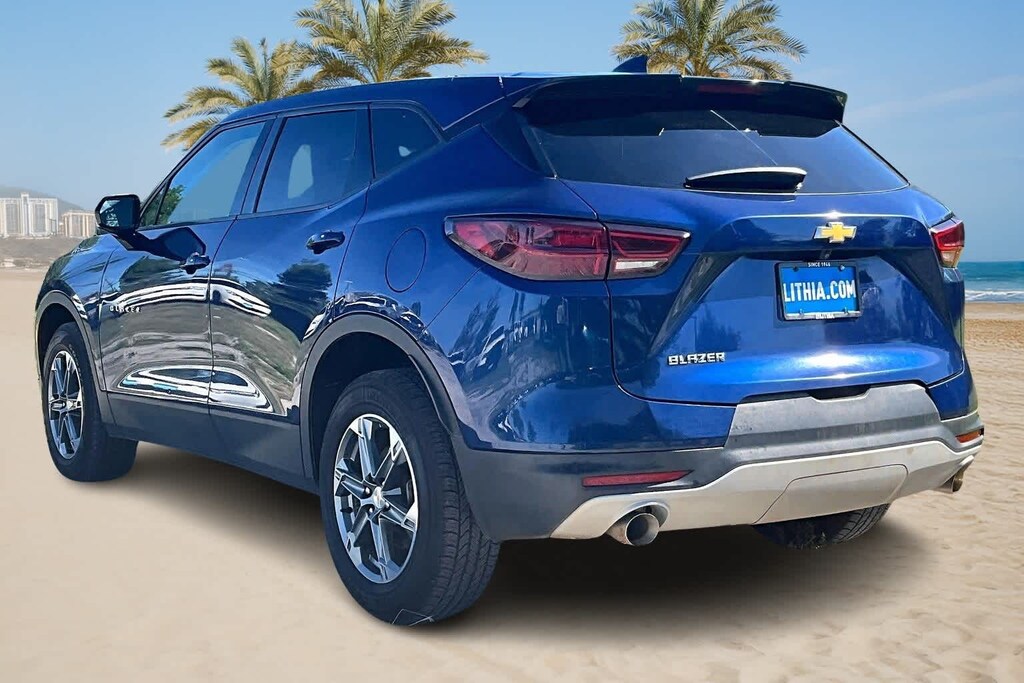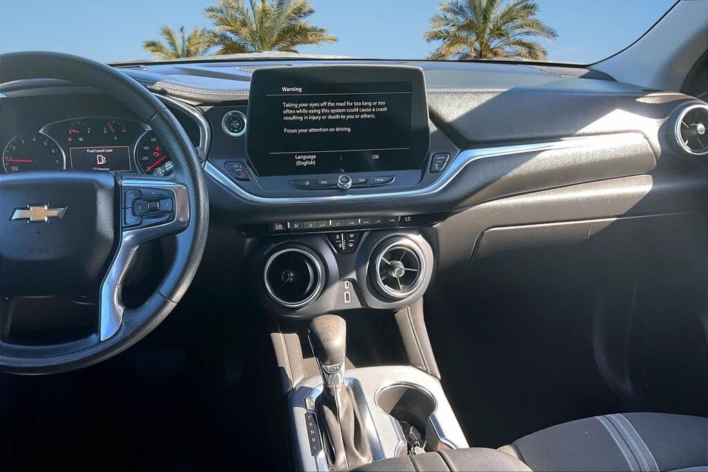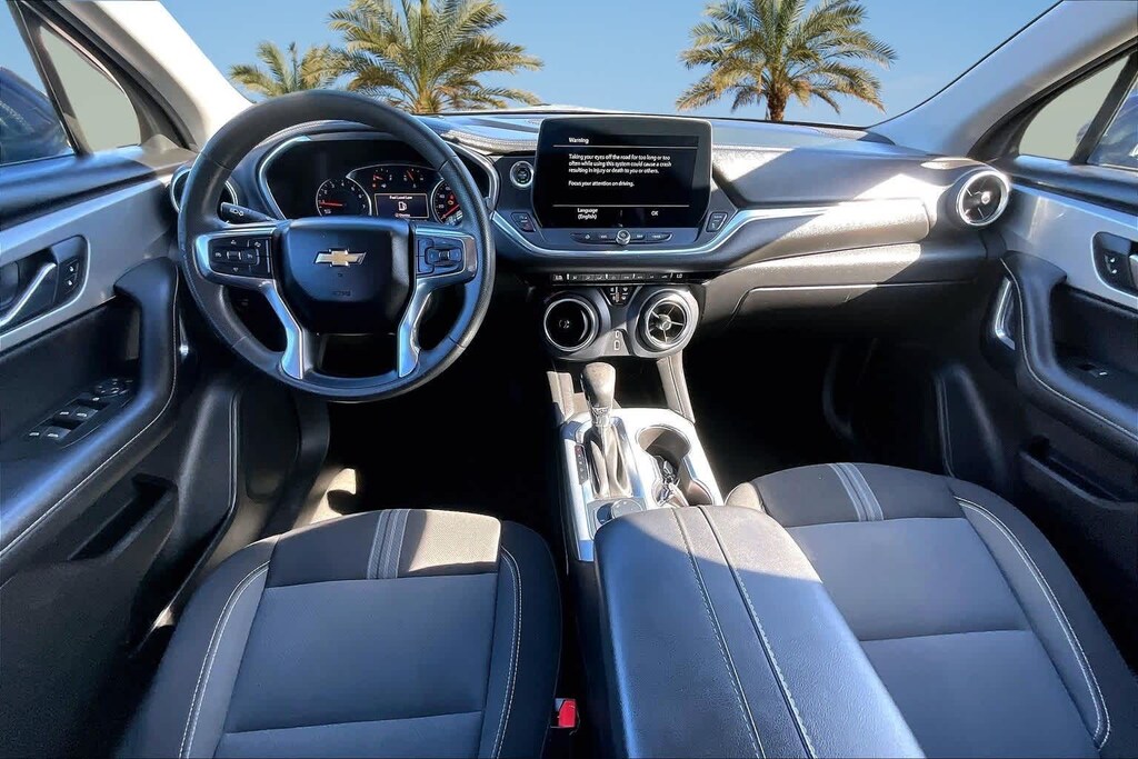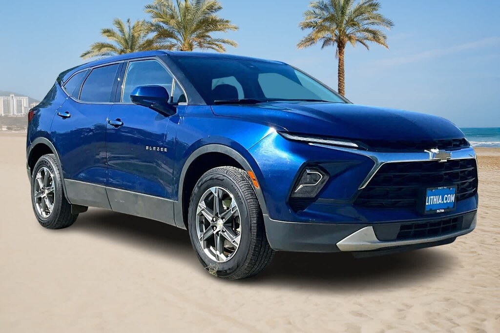 FRESH OIL CHANGE, 170 Amp Alternator, 3.47 Final Drive Axle Ratio, 4-Way Manual Front Passenger Seat Adjuster, 4-Wheel Disc Brakes, 6 Speakers, 6-Speaker Audio System Feature, 8-Way Power Driver Seat Adjuster, ABS brakes, Air Conditioning, Alloy wheels, AM/FM radio: SiriusXM with 360L, Apple CarPlay/Android Auto, Auto High-beam Headlights, Automatic temperature control, Brake assist, Bumpers: body-color, Child-Seat-Sensing Airbag, Compass, Delay-off headlights, Driver door bin, Driver vanity mirror, Dual front impact airbags, Dual front side impact airbags, Electronic Stability Control, Emergency communication system: OnStar and Chevrolet connected services capable, Four wheel independent suspension, Front anti-roll bar, Front Bucket Seats, Front Center Armrest, Front dual zone A/C, Front reading lights, Fully automatic headlights, Heated door mirrors, Illuminated entry, Knee airbag, Leather Shift Knob, Low tire pressure warning, Occupant sensing airbag, Outside temperature display, Overhead airbag, Overhead console, Panic alarm, Passenger door bin, Passenger vanity mirror, Power door mirrors, Power Driver Lumbar Control, Power driver seat, Power steering, Power windows, Preferred Equipment Group 2LT, Premium audio system: Chevrolet Infotainment 3 Plus, Premium Cloth Seat Trim, Radio data system, Radio: Chevrolet Infotainment 3 Plus System, Rear anti-roll bar, Rear reading lights, Rear seat center armrest, Rear window defroster, Rear window wiper, Remote keyless entry, Ride & Handling Suspension, Security system, SiriusXM w/360L, Speed control, Speed-sensing steering, Split folding rear seat, Spoiler, Steering wheel mounted audio controls, Tachometer, Telescoping steering wheel, Tilt steering wheel, Traction control, Trip computer, Variably intermittent wipers, Voltmeter, Wheels: 18 Grazen Metallic Aluminum. 22/29 City/Highway MPG Blue Glow Metallic 2023 Chevrolet Blazer LT FWD 9-Speed Automatic with Overdrive 2.0L Turbocharged