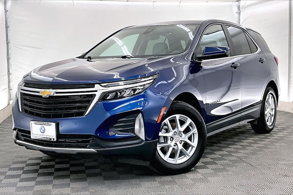 Clean CARFAX. Blue Glow Metallic 2023 Chevrolet Equinox LT FWD 6-Speed Automatic Electronic with Overdrive 1.5L DOHC 17 Aluminum Wheels, 2 Rear USB Charging-Only Ports, 2 USB Ports & Auxiliary Input Jack, 2-Way Power Driver Lumbar Control Seat Adjuster, 3.50 Final Drive Axle Ratio, 4-Wheel Disc Brakes, 6 Speakers, 6-Speaker Audio System Feature, ABS brakes, Air Conditioning, All-Weather Floor Liners (LPO), Alloy wheels, AM/FM radio: SiriusXM, Auto High-beam Headlights, Bluetoothî For Phone, Brake assist, Bumpers: body-color, Compass, Delay-off headlights, Driver 8-Way Power Seat Adjuster, Driver door bin, Driver vanity mirror, Dual front impact airbags, Dual front side impact airbags, Electronic Stability Control, Emergency communication system: OnStar and Chevrolet connected services capable, Floor Liner Package (LPO), Four wheel independent suspension, Front anti-roll bar, Front Bucket Seats, Front Center Armrest, Front Passenger 4-Way Manual Seat Adjuster, Front reading lights, Fully automatic headlights, Heated door mirrors, Illuminated entry, Integrated Cargo Liner (LPO), Lane Change Alert w/Side Blind Zone Alert, Low tire pressure warning, Occupant sensing airbag, Outside temperature display, Overhead airbag, Overhead console, Panic alarm, Passenger door bin, Passenger vanity mirror, Power door mirrors, Power driver seat, Power steering, Power windows, Preferred Equipment Group 2FL, Premium audio system: Chevrolet Infotainment 3, Premium Cloth Seat Trim, Radio data system, Radio: Chevrolet Infotainment 3 System w/AM/FM, Rear anti-roll bar, Rear Cross Traffic Alert, Rear reading lights, Rear seat center armrest, Rear window defroster, Rear window wiper, Remote keyless entry, Security system, Side Blind Zone & Rear Cross Traffic, SiriusXM Radio, Speed control, Speed-sensing steering, Split folding rear seat, Spoiler, Steering wheel mounted audio controls, Tachometer, Telescoping steering wheel, Tilt steering wheel, Traction control, Trip computer, Variably intermittent wipers, Wireless Apple CarPlay/Wireless Android Auto.