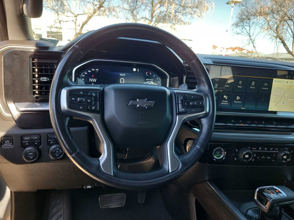 ENGINE, DURAMAX 3.0L TURBO-DIESEL I6 (305 hp [227 kW] @ 3750 rpm, 495 lb-ft of torque [671 Nm] @ 2750 rpm) Includes (KW5) 220-amp alternator and (K05) engine block heater.), Z71 OFF-ROAD PACKAGE includes (Z71) Off-Road suspension, (JHD) Hill Descent Control, (NZZ) skid plates and (K47) heavy-duty air filter Includes Z71 hard badge, (N10) dual exhaust, (RCV) 18 bright silver painted wheels, (XCK) 265/65R18 all-terrain, blackwall tires and (NQH) 2-speed transfer case. SEATS, FRONT BUCKET with center console (Includes (EPH) Electronic Transmission Range Selector (console mounted). AUDIO SYSTEM, CHEVROLET INFOTAINMENT 3 PREMIUM SYSTEM with Google built-in, 13.4 diagonal HD color touchscreen, includes multi-touch display, AM/FM stereo, Bluetooth® streaming audio for music and most phones; featuring wireless Android Auto® and Apple CarPlay® capability for compatible phones, advanced voice recognition, in-vehicle apps, personalized profiles for infotainment and vehicle settings (STD), TRANSMISSION, 10-SPEED AUTOMATIC with Electronic Transmission Range Selector (ETRS), electronically controlled with overdrive, tow/haul mode and steering column paddle shifters. Includes Cruise Grade Braking and Powertrain Grade Braking. Chevrolet RST with Sterling Gray Metallic exterior and Jet Black interior features a Straight 6 Cylinder Engine with 310 HP at 5600 RPM*.