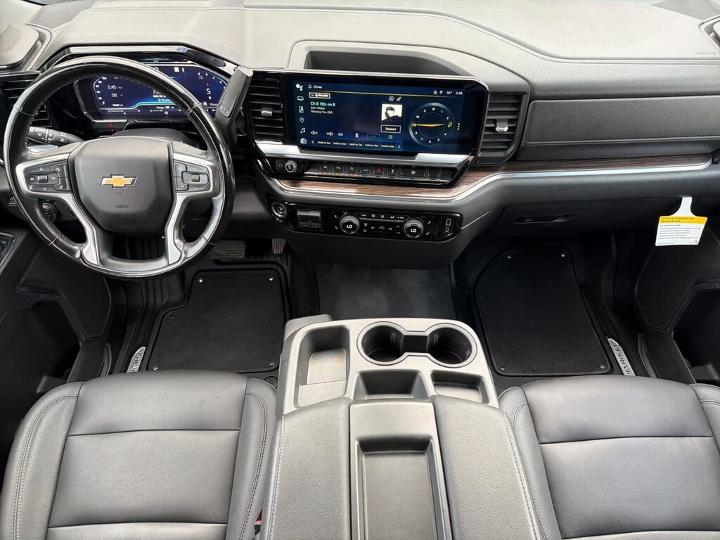 Dark Ash Metallic 2023 Chevrolet Silverado 1500 LT 4WD 8-Speed Automatic 2.7L Turbo 8-Speed Automatic, 4WD, Black Leather, 10-Way Power Driver Seat w/Lumbar, 12.3 Multicolor Reconfigurable Digital Display, 120-Volt Instrument Panel Power Outlet, All-Star Edition, Auto-Locking Rear Differential, Bluetoothî For Phone, Chevytec Spray-On Black Bedliner, Chrome Mirror Caps, Color-Keyed Carpeting Floor Covering, Compass, Convenience Package, Convenience Package II, Deep-Tinted Glass, Dual Rear USB Ports (Charge Only), Dual-Zone Automatic Climate Control, Electric Rear-Window Defogger, Electrical Steering Column Lock, Electronic Cruise Control, EZ Lift Power Lock & Release Tailgate, Front Frame-Mounted Black Recovery Hooks, Front Rubberized Vinyl Floor Mats, HD Rear Vision Camera, HD Surround Vision, Heated Driver & Front Outboard Passenger Seats, Heated Power-Adjustable Outside Mirrors, Heated Steering Wheel, Hitch Guidance w/Hitch View, Inside Rear-View Mirror w/Tilt, Integrated Trailer Brake Controller, Keyless Open & Start, Leather Package, Leather-Appointed Front Seat Trim, LED Cargo Area Lighting, OnStar & Chevrolet Connected Services Capable, Perimeter Lighting, Power Front Windows w/Driver Express Up/Down, Power Front Windows w/Passenger Express Down, Power Rear Windows w/Express Down, Power Sliding Rear Window w/Rear Defogger, Preferred Equipment Group 1LT, Protection Package, Rear 60/40 Folding Bench Seat (Folds Up), Rear Cross Traffic Alert-Braking, Rear Park Assist, Rear Pedestrian Alert, Rear Rubberized-Vinyl Floor Mats, Rear Wheelhouse Liners, Remote Start Package, Remote Vehicle Starter System, Safety Package, SiriusXM w/360L, Standard Tailgate, Steering Wheel Audio Controls, Theft Deterrent System (Unauthorized Entry), Trailer Camera Provisions, Trailer Side Blind Zone Alert, Trailering App, Trailering Package, Universal Home Remote, Up-Level Rear Seat w/Storage Package, Wireless Phone Projection, Wrapped Steering Wheel.