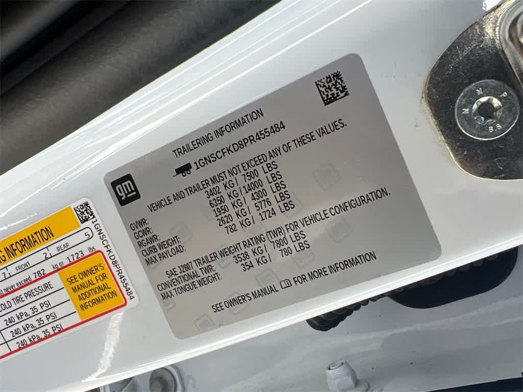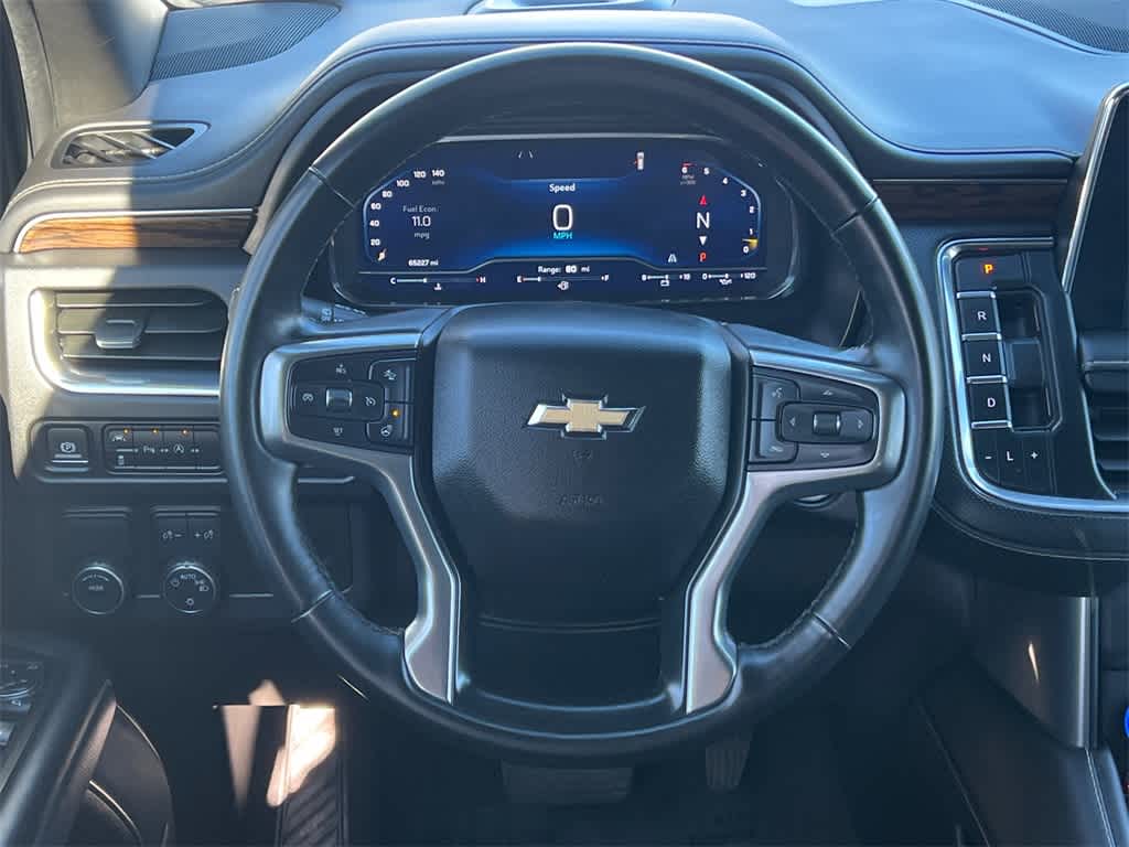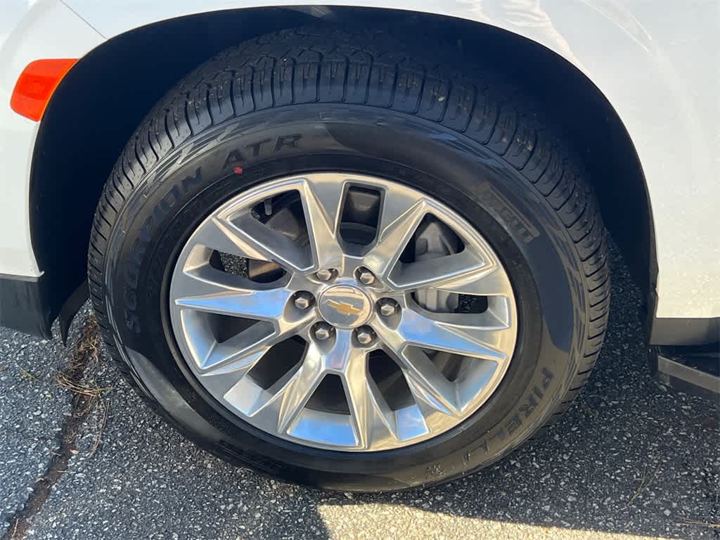 Suburban Premier is nicely equipped with Preferred Equipment Group 1LZ (1st & 2nd Row Color-Keyed Carpeted Floor Mats, 3rd Row 60/40 Power-Folding Split-Bench, Auto-Dimming Inside Rear-View Mirror, Bose 10-Speaker Surround w/CenterPoint, Bright Front & Rear Door Sill Plates, Chrome Door Handles w/Body-Color Strip, Chrome Mirror Caps, Color-Keyed Carpeting Floor Covering, Driver & Front Outboard Passenger Airbags, Dual Exhaust System, Enhanced Driver Information Center, Floor Console, Hands-Free Rear Power Programmable Liftgate, Heated & Ventilated Driver & Front Passenger Seats, Heated 2nd Row Outboard Seats, Heated Driver & Front Passenger Seats, Heated Steering Wheel, Infotainment Display, Lane Change Alert w/Side Blind Zone Alert, LED Daytime Running Lamps, Memory Settings, Outside Heated Power-Adjustable Mirrors, Power Release 2nd Row Bucket Seats, Power Tilt & Telescopic Steering Column, Rear Cross Traffic Alert, Remote Start, Safety Alert Seat, SiriusXM Radio w/360L, Universal Home Remote, Wireless Charging, and Wrapped Steering Wheel), 10 Speakers, 20 x 9 Polished Aluminum Wheels, 3.23 Rear Axle Ratio, 3rd row seats: split-bench, 4-Wheel Disc Brakes, ABS brakes, Adaptive suspension, Air Conditioning, Alloy wheels, AM/FM radio: SiriusXM with 360L, Apple CarPlay/Android Auto, Auto High-beam Headlights, Auto-dimming door mirrors, Auto-dimming Rear-View mirror, Auto-leveling suspension, Automatic temperature control, Brake assist, Bumpers: body-color, Compass, Delay-off headlights, Deleted 3 Years of Remote Access, Driver door bin, Driver vanity mirror, Dual front impact airbags, Dual front side impact airbags, Electronic Stability Control, Emergency communication system: OnStar and Chevrolet connected services capable, Four wheel independent suspension, Front anti-roll bar, Front Bucket Seats, Front Center Armrest, Front dual zone A/C, Front reading lights, Fully automatic headlights, Garage door transmitter, Heated door mirrors, Heated front seats, Heated rear seats, Heated steering wheel, Illuminated entry, Low tire pressure warning, Magnetic Ride Control Suspension, Memory seat, Navigation System, Occupant sensing airbag, Outside temperature display, Overhead airbag, Overhead console, Panic alarm, Passenger door bin, Passenger vanity mirror, Perforated Leather Seating Surfaces, Power door mirrors, Power driver seat, Power Liftgate, Power passenger seat, Power steering, Power windows, Premium audio system: Chevrolet Infotainment 3 Premium, Radio: Chevrolet Infotainment 3 Premium System, Rain sensing wipers, Rear air conditioning, Rear anti-roll bar, Rear reading lights, Rear window defroster, Rear window wiper, Remote keyless entry, Roof rack: rails only, Security system, Speed control, Speed-sensing steering, Split folding rear seat, Spoiler, Steering wheel memory, Steering wheel mounted audio controls, Tachometer, Telescoping steering wheel, Tilt steering wheel, Traction control, Trip computer, Turn signal indicator mirrors, Variably intermittent wipers, Ventilated front seats, and Voltmeter.