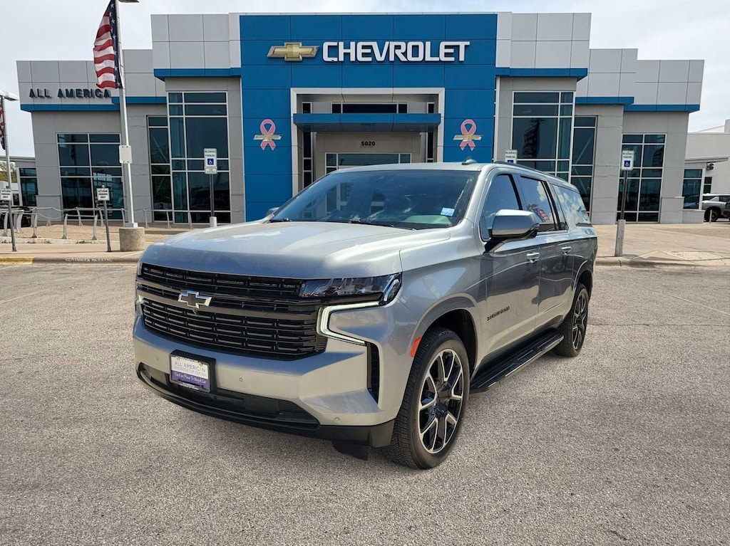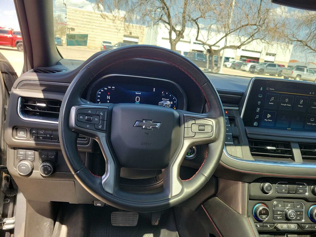 LUXURY PACKAGE includes (WPD) Driver Alert Package content, (UV2) HD Surround Vision, (UKK) Rear Pedestrian Alert, (A45) memory settings, (DXR) outside heated power-adjustable, power-folding, body-color mirrors with driver-side auto-dimming and integrated turn signal indicators, (N38) power tilt and telescopic steering column, (KI3) heated steering wheel, (KA6) second row outboard heated seats, (ATT) second row power 60/40 split-folding bench seats and (AS8) third row power 60/40 split-folding bench seats (Also includes (KSG) Adaptive Cruise Control and (UGN) Enhanced Automatic Emergency Braking. SUNROOF, POWER PANORAMIC, DUAL-PANE, TILT-SLIDING with express-open and close and power sunshade, SEATS, SECOND ROW BUCKET, POWER RELEASE, AUDIO SYSTEM, CHEVROLET INFOTAINMENT 3 PREMIUM SYSTEM WITH GOOGLE BUILT-IN 10.2 diagonal HD color touchscreen, includes multi-touch display, AM/FM stereo, Bluetooth® streaming audio for music and most phones; featuring wireless Android Auto® and Apple CarPlay® capability for compatible phones, advanced voice recognition, in-vehicle apps, personalized profiles for infotainment and vehicle settings.) (STD), STEERING WHEEL, HEATED, ENGINE, 5.3L ECOTEC3 V8 with Dynamic Fuel Management, Direct Injection and Variable Valve Timing, includes aluminum block construction (355 hp [265 kW] @ 5600 rpm, 383 lb-ft of torque [518 Nm] @ 4100 rpm) (STD), TRANSMISSION, 10-SPEED AUTOMATIC electronically controlled with overdrive, includes Traction Select System including tow/haul (Standard with (L84) 5.3L EcoTec3 V8 engine or (L87) 6.2L EcoTec3 V8 engine only.) (STD), DRIVER ALERT PACKAGE includes (UKC) Lane Change Alert with Side Blind Zone Alert and (UFG) Rear Cross Traffic Alert, SUSPENSION, PREMIUM SMOOTH RIDE (STD). Chevrolet RST with STERLING GRAY METALLIC exterior and JET BLACK / VICTORY RED interior features a 8 Cylinder Engine with 355 HP at 5600 RPM*.