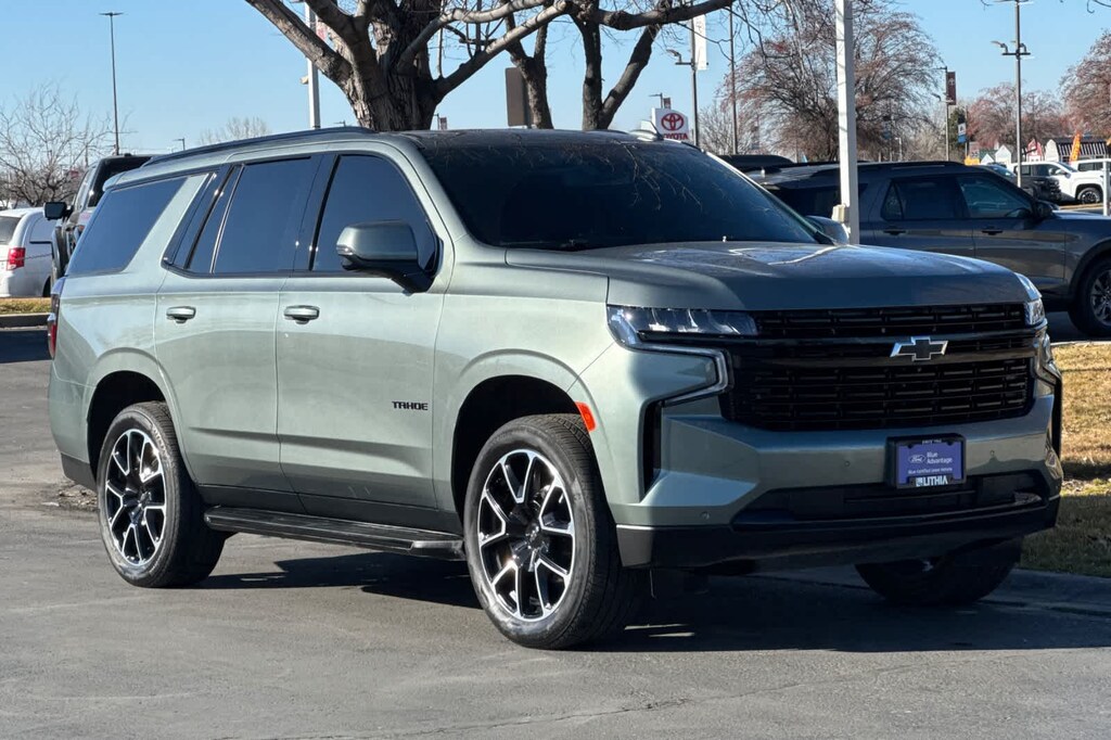 LUXURY PACKAGE includes (WPD) Driver Alert Package content, (UV2) HD Surround Vision, (UKK) Rear Pedestrian Alert, (A45) memory settings, (DXR) outside heated power-adjustable, power-folding, body-color mirrors with driver-side auto-dimming and integrated turn signal indicators, (N38) power tilt and telescopic steering column, (KI3) heated steering wheel, (KA6) second row outboard heated seats, (ATT) second row power 60/40 split-folding bench seats and (AS8) third row power 60/40 split-folding bench seats Also includes (KSG) Adaptive Cruise Control and (UGN) Enhanced Automatic Emergency Braking. SUNROOF, POWER PANORAMIC, DUAL-PANE, TILT-SLIDING with express-open and close and power sunshade, AUDIO SYSTEM, CHEVROLET INFOTAINMENT 3 PREMIUM SYSTEM WITH GOOGLE BUILT-IN 10.2 diagonal HD color touchscreen, includes multi-touch display, AM/FM stereo, Bluetooth® streaming audio for music and most phones; featuring wireless Android Auto® and Apple CarPlay® capability for compatible phones, advanced voice recognition, in-vehicle apps, personalized profiles for infotainment and vehicle settings (STD), STEERING WHEEL, HEATED, ENGINE, 5.3L ECOTEC3 V8 with Dynamic Fuel Management, Direct Injection and Variable Valve Timing, includes aluminum block construction (355 hp [265 kW] @ 5600 rpm, 383 lb-ft of torque [518 Nm] @ 4100 rpm) (STD), TRANSMISSION, 10-SPEED AUTOMATIC electronically controlled with overdrive, includes Traction Select System including tow/haul (Standard with (L84) 5.3L EcoTec3 V8 engine only or (L87) 6.2L EcoTec3 V8 engine only.) (STD), DRIVER ALERT PACKAGE includes (UKC) Lane Change Alert with Side Blind Zone Alert and (UFG) Rear Cross Traffic Alert. 2023 Chevrolet Tahoe with Silver Sage Metallic exterior and Jet Black/Victory Red interior features a 8 Cylinder Engine with 355 HP at 5600 RPM*.