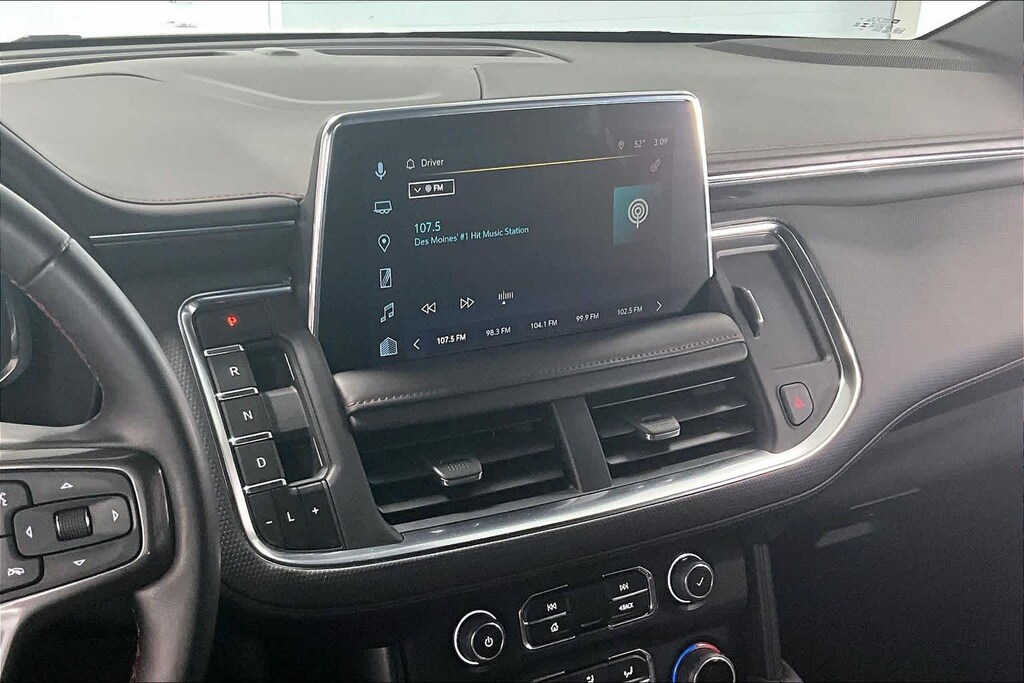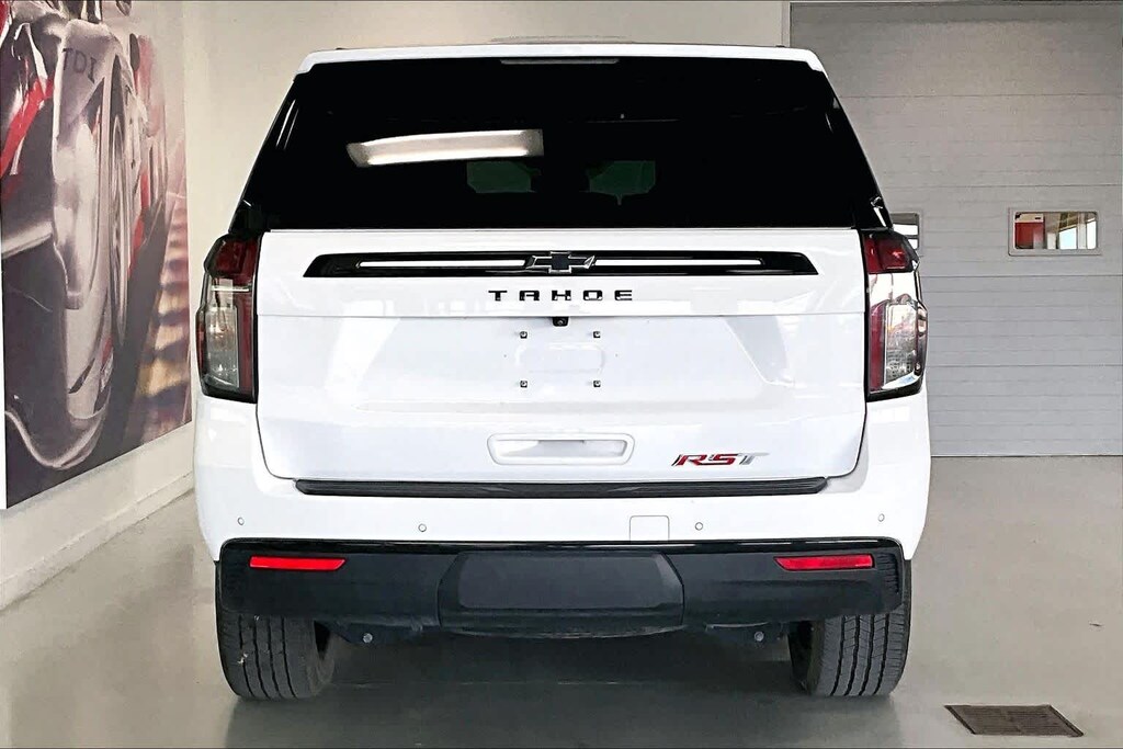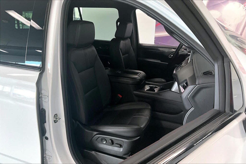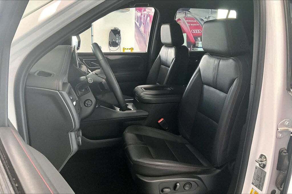Tahoe RST is nicely equipped with Driver Alert Package (Lane Change Alert w/Side Blind Zone Alert and Rear Cross Traffic Alert), License Plate Front Mounting Package, Luxury Package (2nd Row Pwr Release 60/40 Split-Folding Bench Seat, 3rd Row 60/40 Power-Folding Split-Bench Seat, Adaptive Cruise Control, Enhanced Automatic Emergency Braking, HD Surround Vision, Heated 2nd Row Outboard Seats, Heated Steering Wheel, Memory Settings, Outside Heated Power-Adjustable Mirrors, Power Tilt & Telescopic Steering Column, and Rear Pedestrian Alert), Preferred Equipment Group 1SP (1st & 2nd Row Color-Keyed Carpeted Floor Mats, Auto-Dimming Inside Rear-View Mirror, Bose 9-Speaker Stereo Audio System Feature, Bright Front & Rear Door Sill Plates, Color-Keyed Carpeting Floor Covering, Driver & Front Outboard Passenger Airbags, Enhanced Driver Information Center, Floor Console w/Storage Area, Hands-Free Rear Power Programmable Liftgate, Infotainment Display, LED Daytime Running Lamps, Memory Settings for Driver, Remote Start, SiriusXM Radio w/360L, Universal Home Remote, Wireless Charging, and Wrapped Steering Wheel), 4WD, Jet Black/Victory Red Leather, 10-Way Power Driver & Passenger Seat Adjusters, 3.23 Rear Axle Ratio, 3rd row seats: split-bench, 4-Wheel Disc Brakes, 9 Speakers, ABS brakes, Air Conditioning, Alloy wheels, AM/FM radio: SiriusXM with 360L, Apple CarPlay/Android Auto, Auto High-beam Headlights, Auto-dimming Rear-View mirror, Automatic temperature control, Brake assist, Bumpers: body-color, Compass, Delay-off headlights, Driver door bin, Driver vanity mirror, Dual front impact airbags, Dual front side impact airbags, Electronic Stability Control, Emergency communication system: OnStar and Chevrolet connected services capable, Four wheel independent suspension, Front anti-roll bar, Front Bucket Seats, Front Center Armrest, Front dual zone A/C, Front High-Back Reclining Bucket Seats, Front reading lights, Fully automatic headlights, Garage door transmitter, Heated door mirrors, Heated Driver & Front Passenger Seats, Heated front seats, Illuminated entry, Low tire pressure warning, Memory seat, Navigation System, Occupant sensing airbag, Outside temperature display, Overhead airbag, Overhead console, Panic alarm, Passenger door bin, Passenger vanity mirror, Perforated Leather Seat Trim, Power door mirrors, Power driver seat, Power Liftgate, Power passenger seat, Power steering, Power windows, Premium audio system: Chevrolet Infotainment 3 Premium, Premium Smooth Ride Suspension, Radio: Chevrolet Infotainment 3 Premium System, Rain sensing wipers, Rear air conditioning, Rear anti-roll bar, Rear reading lights, Rear seat center armrest, Rear window defroster, Rear window wiper, Remote keyless entry, Roof rack: rails only, Security system, Set of 4 Wheel Locks (LPO), Speed control, Speed-sensing steering, Split folding rear seat, Spoiler, Steering wheel mounted audio controls, Tachometer, Telescoping steering wheel, Tilt steering wheel, Traction control, Trip computer, Variably intermittent wipers, Voltmeter, Wheels: 22 Multi-Spoke Gloss Black (LPO), Wheels: 22 x 9 Bright Machined, and Wheels: 22 x 9 Steel Interim (LPO)