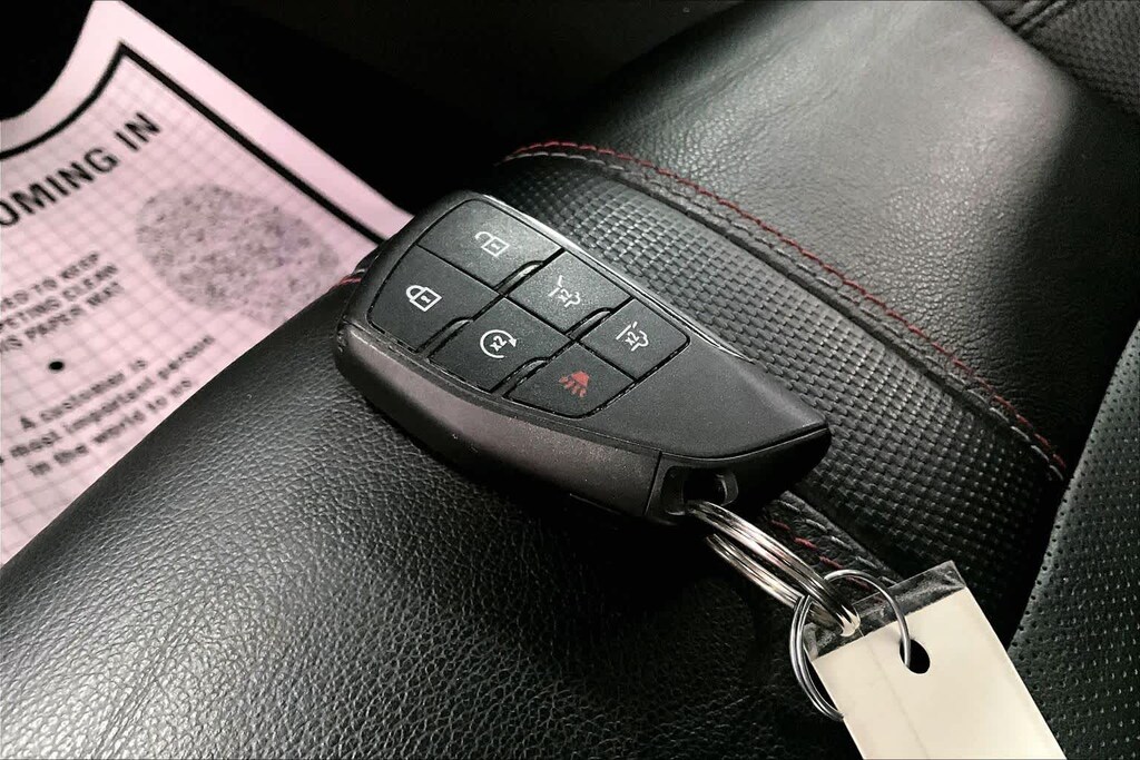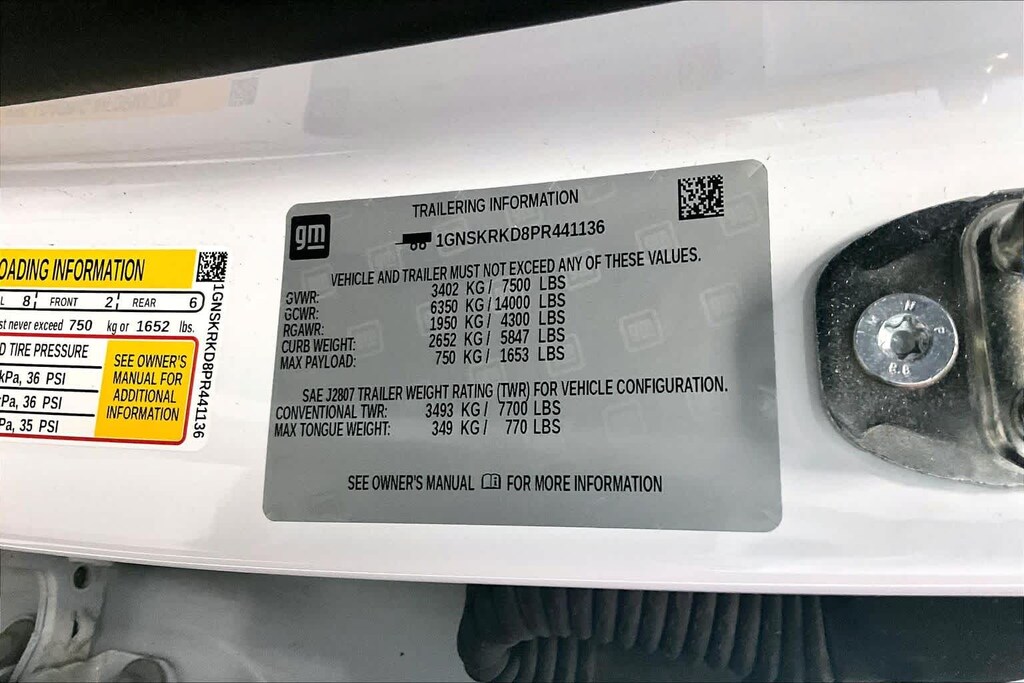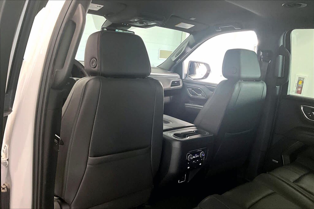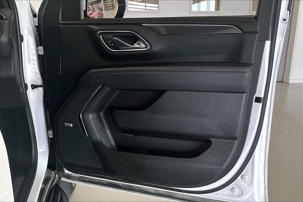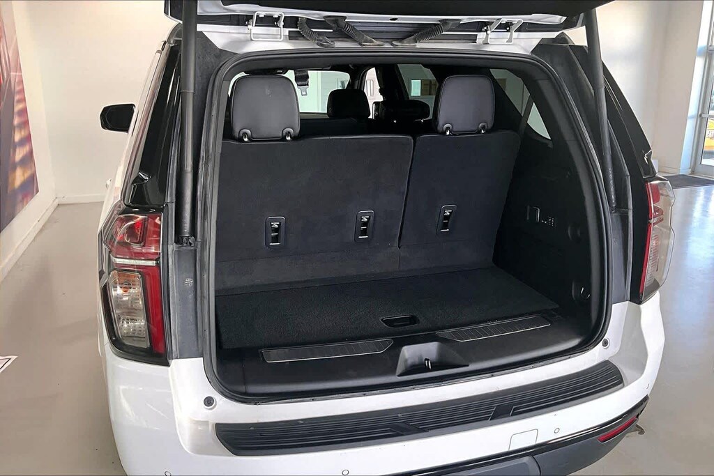 Tahoe RST is nicely equipped with Driver Alert Package (Lane Change Alert w/Side Blind Zone Alert and Rear Cross Traffic Alert), License Plate Front Mounting Package, Luxury Package (2nd Row Pwr Release 60/40 Split-Folding Bench Seat, 3rd Row 60/40 Power-Folding Split-Bench Seat, Adaptive Cruise Control, Enhanced Automatic Emergency Braking, HD Surround Vision, Heated 2nd Row Outboard Seats, Heated Steering Wheel, Memory Settings, Outside Heated Power-Adjustable Mirrors, Power Tilt & Telescopic Steering Column, and Rear Pedestrian Alert), Preferred Equipment Group 1SP (1st & 2nd Row Color-Keyed Carpeted Floor Mats, Auto-Dimming Inside Rear-View Mirror, Bose 9-Speaker Stereo Audio System Feature, Bright Front & Rear Door Sill Plates, Color-Keyed Carpeting Floor Covering, Driver & Front Outboard Passenger Airbags, Enhanced Driver Information Center, Floor Console w/Storage Area, Hands-Free Rear Power Programmable Liftgate, Infotainment Display, LED Daytime Running Lamps, Memory Settings for Driver, Remote Start, SiriusXM Radio w/360L, Universal Home Remote, Wireless Charging, and Wrapped Steering Wheel), 4WD, Jet Black/Victory Red Leather, 10-Way Power Driver & Passenger Seat Adjusters, 3.23 Rear Axle Ratio, 3rd row seats: split-bench, 4-Wheel Disc Brakes, 9 Speakers, ABS brakes, Air Conditioning, Alloy wheels, AM/FM radio: SiriusXM with 360L, Apple CarPlay/Android Auto, Auto High-beam Headlights, Auto-dimming Rear-View mirror, Automatic temperature control, Brake assist, Bumpers: body-color, Compass, Delay-off headlights, Driver door bin, Driver vanity mirror, Dual front impact airbags, Dual front side impact airbags, Electronic Stability Control, Emergency communication system: OnStar and Chevrolet connected services capable, Four wheel independent suspension, Front anti-roll bar, Front Bucket Seats, Front Center Armrest, Front dual zone A/C, Front High-Back Reclining Bucket Seats, Front reading lights, Fully automatic headlights, Garage door transmitter, Heated door mirrors, Heated Driver & Front Passenger Seats, Heated front seats, Illuminated entry, Low tire pressure warning, Memory seat, Navigation System, Occupant sensing airbag, Outside temperature display, Overhead airbag, Overhead console, Panic alarm, Passenger door bin, Passenger vanity mirror, Perforated Leather Seat Trim, Power door mirrors, Power driver seat, Power Liftgate, Power passenger seat, Power steering, Power windows, Premium audio system: Chevrolet Infotainment 3 Premium, Premium Smooth Ride Suspension, Radio: Chevrolet Infotainment 3 Premium System, Rain sensing wipers, Rear air conditioning, Rear anti-roll bar, Rear reading lights, Rear seat center armrest, Rear window defroster, Rear window wiper, Remote keyless entry, Roof rack: rails only, Security system, Set of 4 Wheel Locks (LPO), Speed control, Speed-sensing steering, Split folding rear seat, Spoiler, Steering wheel mounted audio controls, Tachometer, Telescoping steering wheel, Tilt steering wheel, Traction control, Trip computer, Variably intermittent wipers, Voltmeter, Wheels: 22 Multi-Spoke Gloss Black (LPO), Wheels: 22 x 9 Bright Machined, and Wheels: 22 x 9 Steel Interim (LPO)