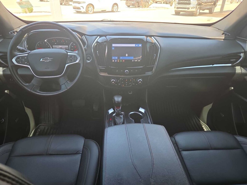 TRAILERING EQUIPMENT includes (V08) heavy-duty cooling system, trailer hitch and (CTT) trailering assist guidelines (Includes (PZ8) Hitch Guidance with Hitch View.), LPO, INTERIOR PROTECTION PACKAGE includes (VAV) first and second row all-weather floor mats, LPO, (VKN) third row all-weather floor mats, LPO and (VLI) all-weather cargo mat, AUDIO SYSTEM, CHEVROLET INFOTAINMENT 3 PLUS SYSTEM with connected Navigation, 8 diagonal HD color touchscreen, AM/FM stereo, Bluetooth® audio streaming for 2 active devices, Apple CarPlay® and Android Auto® capable, enhanced voice recognition, in-vehicle apps, cloud connected personalization for select infotainment and vehicle settings. Subscription required for enhanced and connected services after trial period (STD), ENGINE, 3.6L V6, SIDI, VVT (310 hp [232.0 kW] @ 6800 rpm, 266 lb-ft of torque [361 N-m] @ 2800 rpm) (STD), TRANSMISSION, 9-SPEED AUTOMATIC (STD). Chevrolet RS with IRIDESCENT PEARL TRICOAT exterior and JET BLACK/ SPICE RED interior features a V6 Cylinder Engine with 310 HP at 6800 RPM*.