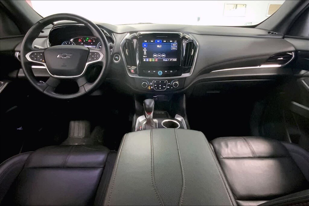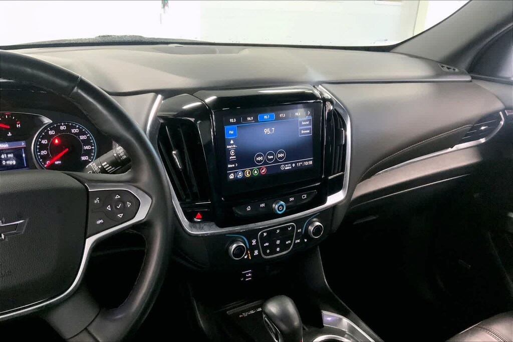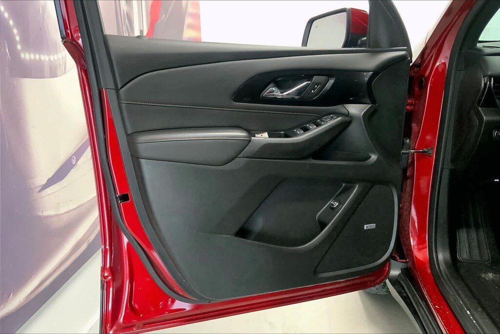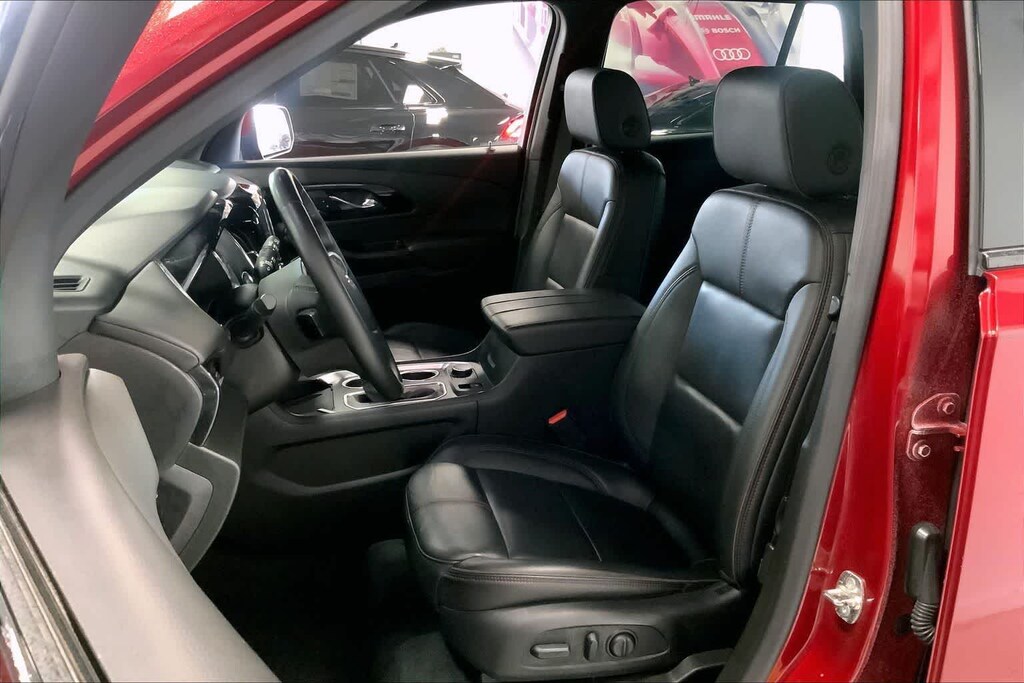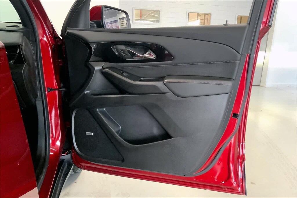 Traverse RS is nicely equipped with Preferred Equipment Group 2LT (Heated Driver & Front Passenger Seats), AWD, 10 Speakers, 3.49 Axle Ratio, 3rd row seats: split-bench, 4-Wheel Disc Brakes, 6-Way Power Front Passenger Seat, 8-Way Power Driver Seat Adjuster, ABS brakes, Air Conditioning, Alloy wheels, AM/FM radio: SiriusXM with 360L, Apple CarPlay/Android Auto, Auto High-beam Headlights, Auto-dimming Rear-View mirror, Automatic temperature control, Bose Premium 10-Speaker Audio System Feature, Brake assist, Bumpers: body-color, Compass, Delay-off headlights, Driver door bin, Driver vanity mirror, Dual front impact airbags, Dual front side impact airbags, Electronic Stability Control, Emergency communication system, Exterior Parking Camera Rear, Four wheel independent suspension, Front anti-roll bar, Front Bucket Seats, Front Center Armrest, Front dual zone A/C, Front Passenger 2-Way Power Lumbar, Front reading lights, Fully automatic headlights, Garage door transmitter, Heated door mirrors, Heated front seats, Heated steering wheel, Illuminated entry, Leather steering wheel, Low tire pressure warning, Navigation System, Not Equipped w/Rear Park Assist (060), Occupant sensing airbag, Outside temperature display, Overhead airbag, Overhead console, Panic alarm, Passenger door bin, Passenger vanity mirror, Perforated Leather-Appointed Seat Trim, Power door mirrors, Power Driver Lumbar Control, Power driver seat, Power Liftgate, Power passenger seat, Power steering, Power windows, Premium audio system: Chevrolet Infotainment 3 Plus, Radio data system, Radio: Chevrolet Infotainment 3 Plus System w/Navi, Rear air conditioning, Rear anti-roll bar, Rear reading lights, Rear window defroster, Rear window wiper, Remote keyless entry, Security system, SiriusXM w/360L, Speed control, Speed-sensing steering, Spoiler, Steering wheel mounted audio controls, Tachometer, Telescoping steering wheel, Tilt steering wheel, Traction control, Trip computer, Turn signal indicator mirrors, Variably intermittent wipers, Voltmeter, and Wheels: 20 Dark Aluminum.