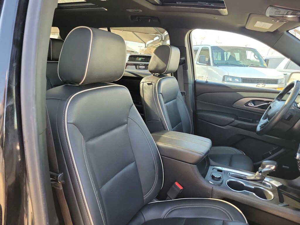 REDLINE EDITION includes (SS8) 20 Gloss Black painted aluminum wheels with Red accents, Gloss Black window surround, (VUP) Redline accent decals, Black mirror caps and door handles, Black painted rocker and wheel openings with Black Ice inserts, Black Ice grille surround and license plate applique, (CG6) Black Traverse badges with Red outline, (B94) Chevrolet Black Bowtie, (V59) Black roof rails, (C3U) Dual Skyscape 2-panel power sunroof and (V92) trailering equipment, TRAILERING EQUIPMENT includes (V08) heavy-duty cooling system, trailer hitch and (CTT) trailering assist guidelines (Includes (PZ8) Hitch Guidance with Hitch View. SUNROOF, DUAL SKYSCAPE 2-PANEL POWER with tilt-sliding front and fixed rear, includes power rear sunscreen, AUDIO SYSTEM, CHEVROLET INFOTAINMENT 3 PLUS SYSTEM with connected Navigation, 8 diagonal HD color touchscreen, AM/FM stereo, Bluetooth® audio streaming for 2 active devices, Apple CarPlay® and Android Auto® capable, enhanced voice recognition, in-vehicle apps, cloud connected personalization for select infotainment and vehicle settings. Subscription required for enhanced and connected services after trial period (STD), ENGINE, 3.6L V6, SIDI, VVT (310 hp [232.0 kW] @ 6800 rpm, 266 lb-ft of torque [361 N-m] @ 2800 rpm) (STD), TRANSMISSION, 9-SPEED AUTOMATIC (STD). Chevrolet Premier with MOSAIC BLACK METALLIC exterior and JET BLACK interior features a V6 Cylinder Engine with 310 HP at 6800 RPM*.