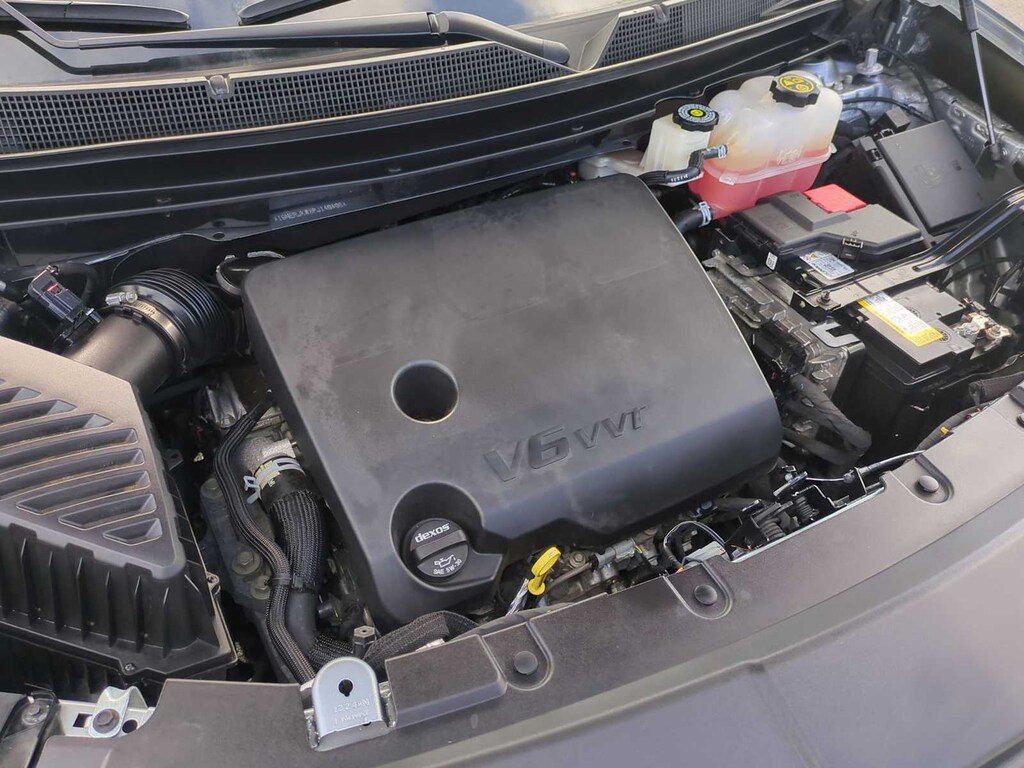 AUDIO SYSTEM, CHEVROLET INFOTAINMENT 3 PLUS SYSTEM with connected Navigation, 8" diagonal HD color touchscreen, AM/FM stereo, Bluetooth® audio streaming for 2 active devices, Apple CarPlay® and Android Auto® capable, enhanced voice recognition, in-vehicle apps, cloud connected personalization for select infotainment and vehicle settings. Subscription required for enhanced and connected services after trial period (STD), ENGINE, 3.6L V6, SIDI, VVT (310 hp [232.0 kW] @ 6800 rpm, 266 lb-ft of torque [361 N-m] @ 2800 rpm) (STD), TRANSMISSION, 9-SPEED AUTOMATIC (STD). Chevrolet RS with STERLING GRAY METALLIC exterior and JET BLACK/ SPICE RED interior features a V6 Cylinder Engine with 310 HP at 6800 RPM*.
