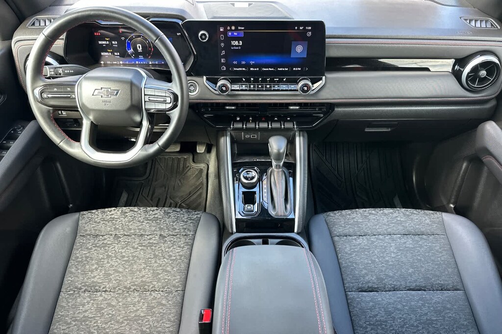 Z71 CONVENIENCE PACKAGE II includes (CJ2) Dual-zone automatic climate control, (N37) Tilt and Telescopic steering column, (PPA) EZ lift and lower tailgate, (A2X) 8-way power driver seat, (AL9) Power driver seat lumbar, (KA1) Heated front seats, (BTV) Remote start, (DD8) Auto dimming inside rearview mirror, (BPC) StowFlex Tailgate, (BDR) Locking Cylinder and (K4C) Wireless charging, TECHNOLOGY PACKAGE includes (KSG) Adaptive Cruise Control, (UKK) Rear Pedestrian Alert and (UV2) HD Surround Vision, LPO, BLACK ASSIST STEPS (dealer-installed), AUDIO SYSTEM FEATURE, BOSE PREMIUM 7-SPEAKER SYSTEM, SAFETY PACKAGE includes (UKI) Blind Zone Steering Assist, (UFB) Rear Cross Traffic Braking, (UD7) Rear Park Assist - With (ZL6) Advanced Trailering Package, includes (UKW) Blind Zone Steering Assist with Trailering, ENGINE, TURBOMAX (310 hp [231 kW] @ 5600 rpm, 430 lb-ft of torque [583 Nm] @ 3000 rpm) (STD), TRANSMISSION, 8-SPEED AUTOMATIC (STD), TRAILERING PACKAGE, HEAVY-DUTY includes trailer hitch and 7-pin connector. 2024 Chevrolet Colorado with Black exterior and Jet Black/Adrenaline Red interior features a 4 Cylinder Engine with 310 HP at 5600 RPM*.