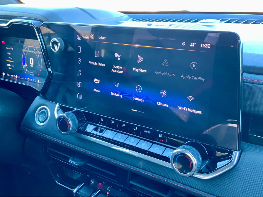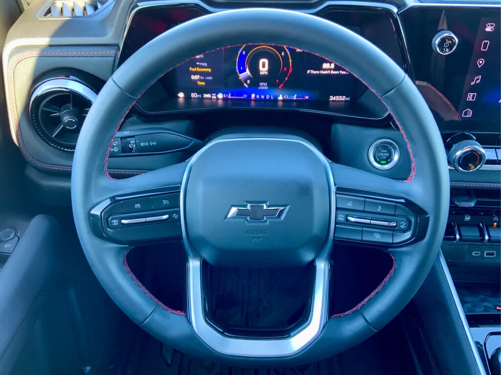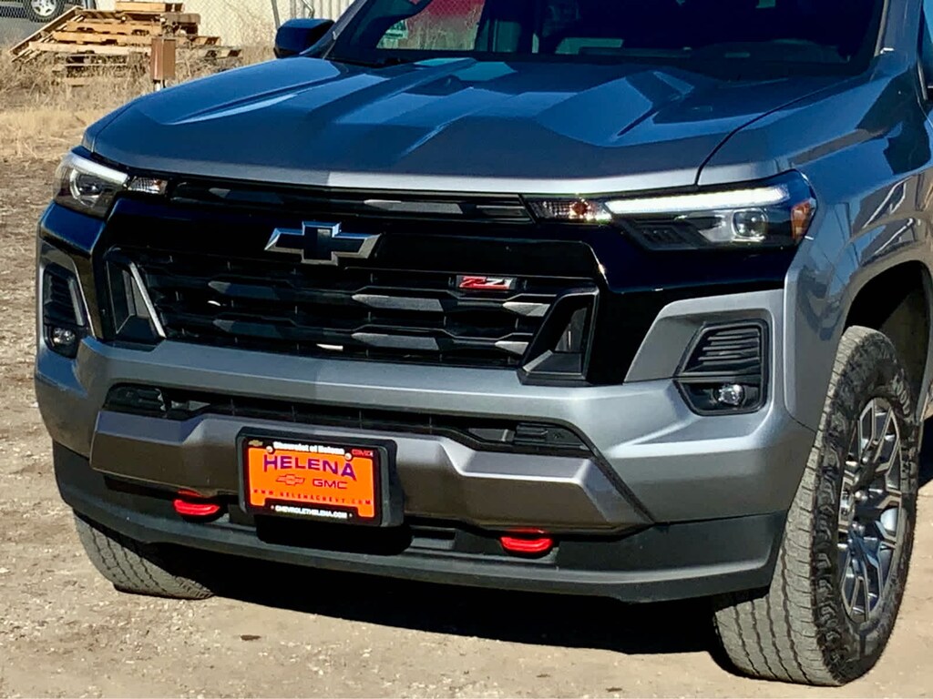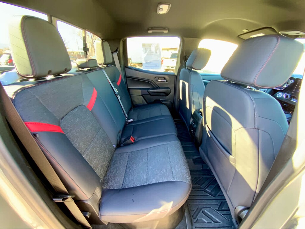 includes (CJ2) Dual-zone automatic climate control, (N37) Tilt and Telescopic steering column, (PPA) EZ lift and lower tailgate, (A2X) 8-way power driver seat, (AL9) Power driver seat lumbar, (KA1) Heated front seats, (BTV) Remote start, (DD8) Auto dimming inside rearview mirror, (BPC) StowFlex Tailgate, (BDR) Locking Cylinder and (K4C) Wireless charging, AUDIO SYSTEM FEATURE, BOSE PREMIUM 7-SPEAKER SYSTEM, BEDLINER, SPRAY-ON, BLACK WITH CHEVROLET LOGO, includes (UKI) Blind Zone Steering Assist, (UFB) Rear Cross Traffic Braking, (UD7) Rear Park Assist - With (ZL6) Advanced Trailering Package, includes (UKW) Blind Zone Steering Assist with Trailering, includes Chevrolet logo, (dealer-installed), (310 hp [231 kW] @ 5600 rpm, 430 lb-ft of torque [583 Nm] @ 3000 rpm) (STD), (STD), includes trailer hitch and 7-pin connector. Chevrolet 4WD Z71 with Sterling Gray Metallic exterior and Jet Black/Adrenaline Red interior features a 4 Cylinder Engine with 310 HP at 5600 RPM*.