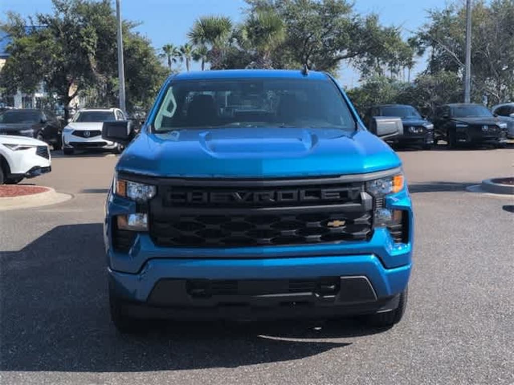 This 2024 Chevrolet Silverado 1500 Custom in Glacier Blue Metallic, features Custom Convenience Package (Electric Rear-Window Defogger, EZ Lift Power Lock & Release Tailgate, LED Cargo Area Lighting, Remote Vehicle Starter System, and Theft Deterrent System (Unauthorized Entry)), Custom Value Package, High Capacity Suspension Package, Preferred Equipment Group 1CX (10-Way Power Driver Seat w/Lumbar, 120-Volt Bed Mounted Power Outlet, 120-Volt Interior Power Outlet, 3.5 Monochromatic Display Driver Info Center, Bluetoothî For Phone, Chevrolet Connected Access Capable, Color-Keyed Carpeting Floor Covering, Deep-Tinted Glass, Dual Rear USB Ports (Charge Only), Electrical Steering Column Lock, Electronic Cruise Control, Front Frame-Mounted Black Recovery Hooks, Front Rubberized Vinyl Floor Mats, HD Rear Vision Camera, Manual Tilt Wheel Steering Column, OnStar & Chevrolet Connected Services Capable, Power Front Windows w/Driver Express Up/Down, Power Front Windows w/Passenger Express Down, Power Rear Windows w/Express Down, Rear 60/40 Folding Bench Seat (Folds Up), Rear Rubberized-Vinyl Floor Mats, Remote Keyless Entry, SiriusXM Radio, Standard Tailgate, and Wi-Fi Hot Spot Capable), Trailering Package (Hitch Guidance), 3.42 Rear Axle Ratio, 4-Wheel Disc Brakes, 40/20/40 Front Split-Bench Seat, 6 Speakers, 6-Speaker Audio System, ABS brakes, Air Conditioning, Alloy wheels, AM/FM radio: SiriusXM, Auto High-beam Headlights, Automatic Emergency Braking, Brake assist, Bumpers: body-color, Cloth Seat Trim, Compass, Delay-off headlights, Driver door bin, Driver vanity mirror, Dual front impact airbags, Dual front side impact airbags, Electronic Stability Control, Following Distance Indicator, Forward Collision Alert, Front anti-roll bar, Front Center Armrest w/Storage, Front Pedestrian Braking, Front reading lights, Front wheel independent suspension, Fully automatic headlights, Heated door mirrors, Illuminated entry, IntelliBeam Automatic High Beam On/Off, Lane Keep Assist w/Lane Departure Warning, Low tire pressure warning, Occupant sensing airbag, Outside temperature display, Overhead airbag, Overhead console, Panic alarm, Passenger door bin, Passenger vanity mirror, Power door mirrors, Power driver seat, Power steering, Power windows, Premium audio system: Chevrolet Infotainment 3, Radio data system, Radio: Chevrolet Infotainment 3 System, Rear reading lights, Rear step bumper, Rear window defroster, Remote keyless entry, Security system, Single Outlet Exhaust, Speed control, Speed-sensing steering, Split folding rear seat, Tachometer, Tilt steering wheel, Traction control, Trip computer, Variably intermittent wipers, Voltmeter, Wheels: 20 x 9 Bright Silver Painted Aluminum, and Wheels: 20 x 9 High Gloss Black Painted Alum: