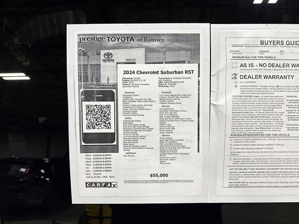 This 2024 Chevrolet Suburban RST will not make it to the weekend!! CALL NOW to reserve your test drive!! (844) 838-7075 Please Visit www.PrestigeToyota.com for further details. Price does not include licensing costs, registration fees, taxes and dealer doc fee of $999 which are to be paid by the consumer.
