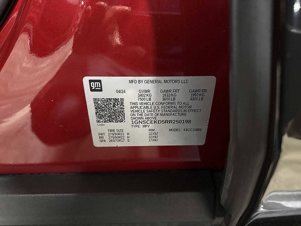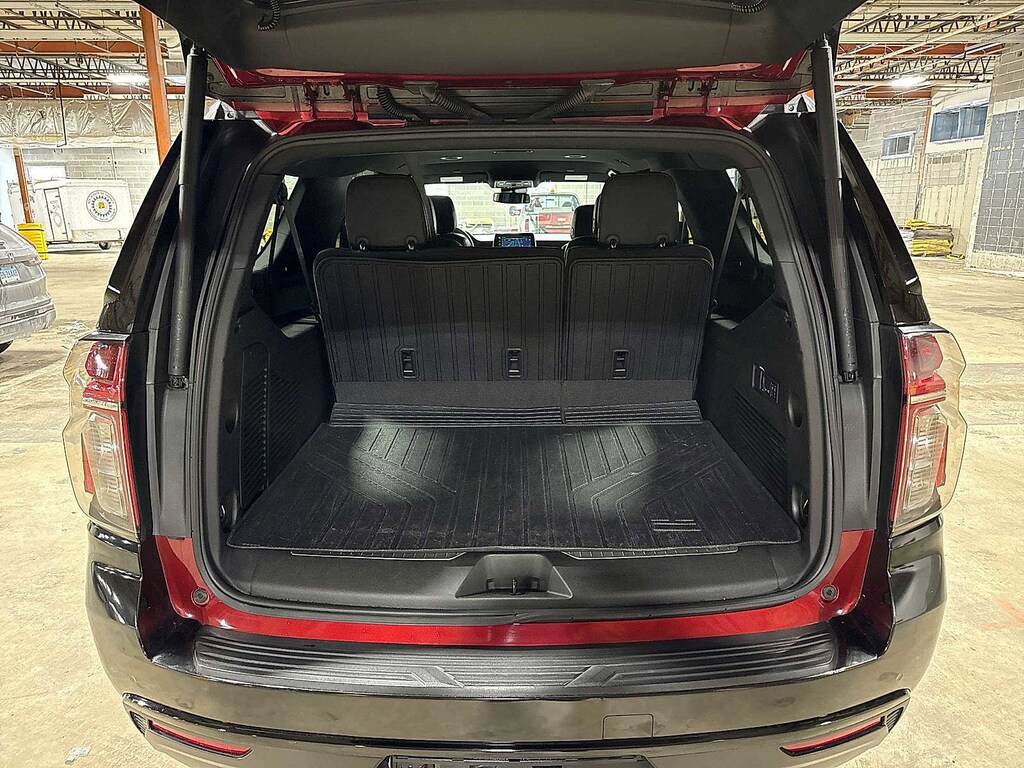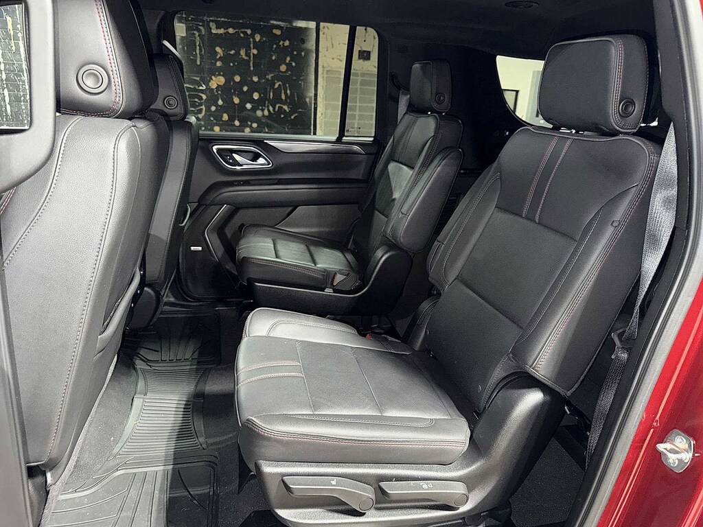 Suburban RST, 4D Sport Utility, EcoTec3 5.3L V8, 10-Speed Automatic with Overdrive, RWD, Black, Jet Black w/Leather-Appointed Seating, 10-Way Power Driver & Passenger Seat Adjusters, 1st & 2nd Row Color-Keyed Carpeted Floor Mats, 2nd Row Pwr Release 60/40 Split-Folding Bench Seat, 3rd Row 60/40 Power-Folding Split-Bench, Adaptive Cruise Control, Auto-Dimming Inside Rear-View Mirror, Bose 9-Speaker Stereo Audio System Feature, Bright Front & Rear Door Sill Plates, Color-Keyed Carpeting Floor Covering, Driver & Front Outboard Passenger Airbags, Driver Alert Package, Enhanced Automatic Emergency Braking, Enhanced Driver Information Center, Floor Console w/Storage Area, Hands-Free Rear Power Programmable Liftgate, HD Surround Vision, Heated 2nd Row Outboard Seats, Heated Driver & Front Passenger Seats, Heated Steering Wheel, Infotainment Display, Lane Change Alert w/Side Blind Zone Alert, LED Daytime Running Lamps, Luxury Package, Memory Settings, Memory Settings For Driver, Outside Heated Power-Adjustable Mirrors, Power Tilt & Telescopic Steering Column, Preferred Equipment Group 1SP, Rear Cross Traffic Alert, Rear Pedestrian Alert, Remote Start, SiriusXM w/360L, Universal Home Remote, Wireless Charging, Wrapped Steering Wheel. Clean CARFAX. Black 2024 Chevrolet Suburban RST RWD 10-Speed Automatic with Overdrive EcoTec3 5.3L V8