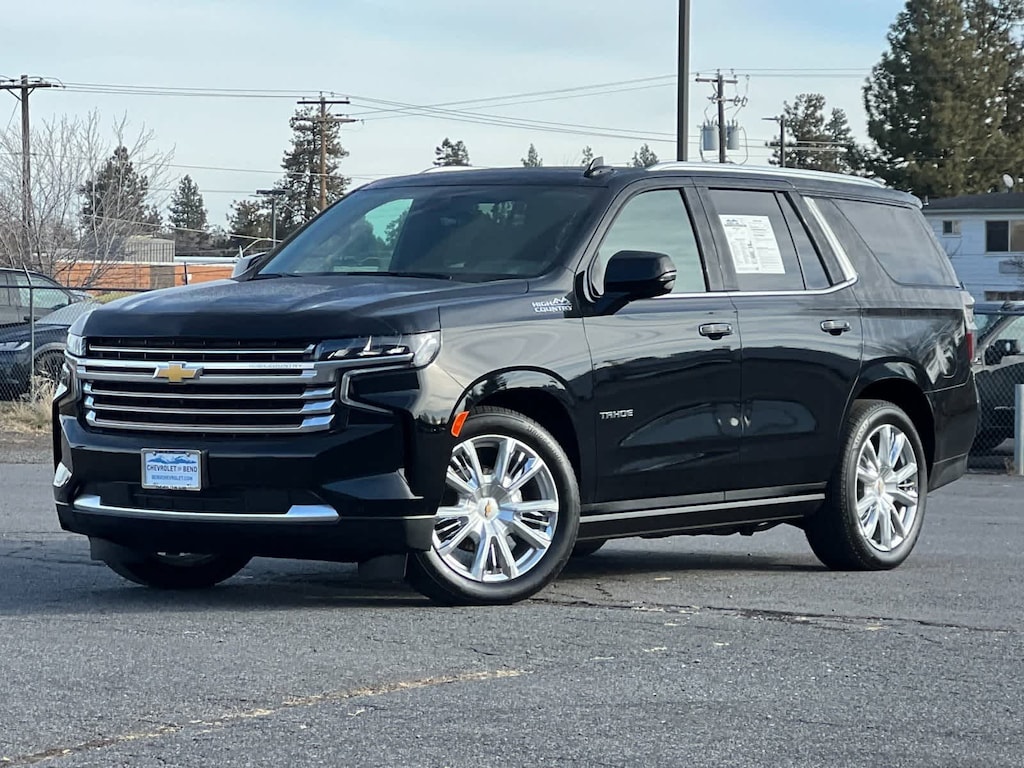 Black 2024 Chevrolet Tahoe High Country 4WD 10-Speed Automatic with Overdrive EcoTec3 6.2L V8 4WD, Jet Black Leather, 15 Diagonal Multi-Color Head-Up Display, 1st & 2nd Row Color-Keyed Carpeted Floor Mats, 2-Speed Active Electronic AutoTrac Transfer Case, 3rd Row 60/40 Power-Folding Split-Bench Seat, Adaptive Cruise Control, Advanced Trailering Package, Bose 10-Speaker Centerpoint Surround Audio Sys Ft, Bright Front & Rear Door Sill Plates, Chrome Door Handles w/Body-Color Strip, Color-Keyed Carpeting Floor Covering, Driver & Front Outboard Passenger Airbags, Dual Exhaust System, Dual-Pane Power Panoramic Sunroof, Enhanced Automatic Emergency Braking, Enhanced Driver Information Center, Extra Capacity Cooling System, Floor Console, Hands-Free Rear Power Programmable Liftgate, HD Surround Vision, Heads-Up Display, Heated 2nd Row Outboard Seats, Heated Steering Wheel, Hill Descent Control, Inside Rearview Auto-Dimming Rear Camera Mirror, Lane Change Alert w/Side Blind Zone Alert, LED Daytime Running Lamps, Max Trailering Package, Memory Settings, Outside Heated Power-Adjustable Mirrors, Power Release 2nd Row Bucket Seats, Power Tilt & Telescopic Steering Column, Preferred Equipment Group 3LZ, Rear Camera Mirror Washer, Rear Cross Traffic Alert, Rear Pedestrian Alert, Remote Start, Safety Alert Seat, SiriusXM w/360L, Spoiler, Universal Home Remote, Wireless Charging, Wrapped Steering Wheel. One owner local vehicle.