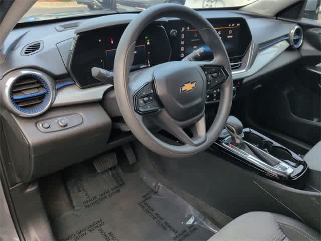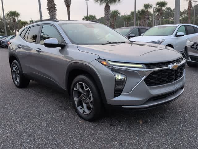 This 2024 Chevrolet Trax LT in Sterling Gray Metallic, features Preferred Equipment Group 1LT, 2-Way Adjustable Front Head Restraints, 3.50 Final Drive Axle Ratio, 4-Way Manual Front Passenger Seat Adjuster, 4-Wheel Disc Brakes, 6 Speakers, 6-Speaker Audio System Feature, 6-Way Manual Driver Seat Adjuster, ABS brakes, Air Conditioning, Alloy wheels, AM/FM radio: SiriusXM, Auto High-beam Headlights, Automatic temperature control, Brake assist, Bumpers: body-color, Cloth/Evotex Seat Trim, Compass, Delay-off headlights, Deleted 3 Years of OnStar Remote Access, Driver door bin, Driver vanity mirror, Dual front impact airbags, Dual front side impact airbags, Electronic Stability Control, Emergency communication system: OnStar and Chevrolet connected services capable, Exterior Parking Camera Rear, Front anti-roll bar, Front Bucket Seats, Front Center Armrest, Front reading lights, Front wheel independent suspension, Fully automatic headlights, Illuminated entry, Low tire pressure warning, Occupant sensing airbag, Outside temperature display, Overhead airbag, Overhead console, Panic alarm, Passenger door bin, Passenger vanity mirror, Power door mirrors, Power steering, Power windows, Premium audio system: Chevrolet Infotainment 3, Radio data system, Radio: Audio System w/AM/FM, Rear window defroster, Rear window wiper, Remote keyless entry, Security system, SiriusXM, Speed control, Split folding rear seat, Spoiler, Steering wheel mounted audio controls, Tachometer, Telescoping steering wheel, Tilt steering wheel, Traction control, Trip computer, Variably intermittent wipers, and Wheels: 17 Gray-Painted Machined Aluminum: