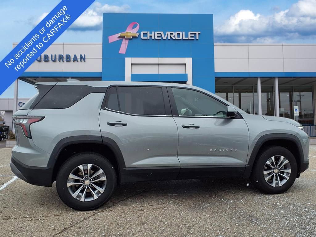 Engineered to excite, our Accident Free, One Owner 2025 Chevrolet Equinox LT is an excellent choice for everyday excursions and more in Sterling Gray Metallic! Powered by a TurboCharged 1.5 Liter 4 Cylinder offering 175hp to a CVT for easy adventures. You can also enjoy calm, composed handling in this Front Wheel Drive SUV, which sees nearly 28mpg on the highway with a bold and confident design. Our Equinox is here to impress with LED lighting, heated power mirrors, 17-inch alloy wheels, and detailed styling.