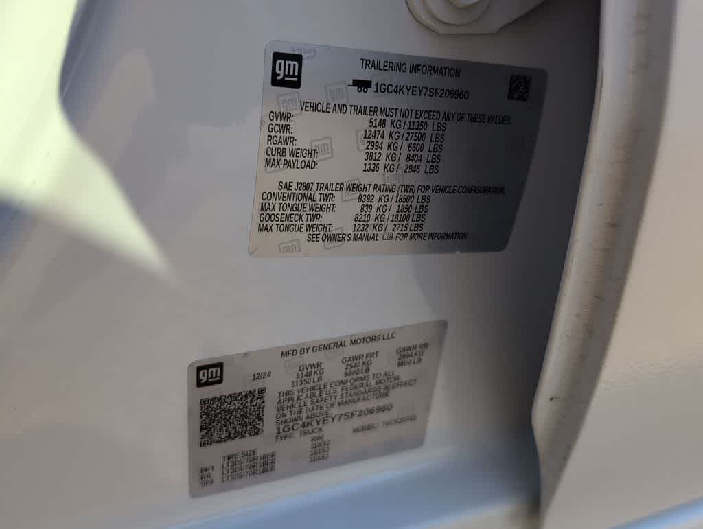 This Silverado 2500HD ZR2 is nicely equipped with Dark Essentials Package (Black Name Plates and Black Tailgate Lettering), Gooseneck/5th Wheel Prep Package (Black Chevytec Spray-on Bedliner), Interior Convenience Package (All-Weather Floor Liners, Console-Mounted Safe, and Underseat Storage), Preferred Equipment Group 3LT (120-Volt Bed Mounted Power Outlet, 120-Volt Interior Power Outlet, 170 Amp Alternator, Auto-Dimming Inside Rear-View Mirror, Bed View Camera with Two Trailer Camera Provisions, Bluetoothî For Phone, Chevrolet Connected Access Capable, Color-Keyed Carpeting Floor Covering, Compass, Deep-Tinted Glass, Durabed Pickup Bed, Electric Rear-Window Defogger, Electronic Cruise Control with Set and Resume Speed, Front Bucket Seats, Front LED Fog Lamps, Front Rain-Sensing Wipers, Heated 2nd Row Outboard Seats, Heated Steering Wheel, High Gloss Black Mirror Caps, Hitch Guidance with Hitch View, in-Vehicle Trailering App System, Keyless Open and Start, LED Cargo Area Lighting, LED Smoked Amber Roof Marker Lamps, Manual Tilt and Telescoping Steering Column, OnStar Services Capable, Perforated Leather Seat Trim, Power Door Locks, Power Front Windows with Driver Express Up/Down, Power Front Windows with Passenger Express Up/Down, Power Rear Windows with Express Down, Power Sliding Rear Window with Defogger, Power Up/Down Tailgate Function with Power Lock and Release, Push Button Start, Rear Cross Traffic Alert, Rear Wheelhouse Liners, Remote Vehicle Starter System, SiriusXM with 360L Trial Subscription, Standard Tailgate, Steering Wheel Audio Controls, Trailer Camera Provisions, Ultrasonic Front and Rear Park Assist, Unauthorized Entry Theft-Deterrent System, Universal Home Remote, Wi-Fi Hotspot Capable, Wireless Charging, Wireless Phone Projection, and Wrapped Steering Wheel), Technology Package (15 Diagonal Multicolor Head-Up Display, Adaptive Cruise Control, and Rear Camera Mirror), Up-Level Rear Seat with Storage Package, ZR2 Suspension Package, 10-Speed Automatic, 4WD, Jet Black/Graystone Leather, 10-Way Power Driver Seat Adjuster with Lumbar, 10-Way Power Passenger Seat Adjuster with Lumbar, 220 Amp Alternator, 4-Wheel Disc Brakes, 7 Speakers, 720 Cold-Cranking Amps Heavy-Duty Battery, ABS brakes, Air Conditioning, Alloy wheels, AM/FM radio: SiriusXM with 360L, Apple CarPlay/Android Auto, Auto High-beam Headlights, Auto-dimming door mirrors, Auto-dimming Rear-View mirror, Automatic temperature control, BOSE Premium 7-Speaker Sound System, Brake assist, Bumpers: chrome, Delay-off headlights, Driver door bin, Driver Memory, Driver vanity mirror, Dual front impact airbags, Dual front side impact airbags, Electronic Stability Control, Emergency communication system: OnStar, Engine Block Heater, Exhaust Brake, EZ Lift Power Lock and Release Tailgate, Floor-Mounted Center Console, Front anti-roll bar, Front Center Armrest, Front dual zone A/C, Front fog lights, Front reading lights, Front wheel independent suspension, Fully automatic headlights, Garage door transmitter, Heated door mirrors, Heated Driver and Front Outboard Passenger Seating, Heated front seats, Heated rear seats, Heated steering wheel, Illuminated entry, Low tire pressure warning, Memory seat, Multi-Flex Tailgate, Occupant sensing airbag, Outside temperature display, Overhead airbag, Overhead console, Panic alarm, Passenger door bin, Passenger vanity mirror, Power door mirrors, Power driver seat, Power passenger seat, Power steering, Power windows, Power-Retractable Black Assist Steps, Premium audio system: Chevrolet Infotainment 3 Premium, Radio: Chevrolet Infotainment 3 Premium System, Rain sensing wipers, Rear reading lights, Rear seat center armrest, Rear step bumper, Rear window defroster, Remote keyless entry, Secu