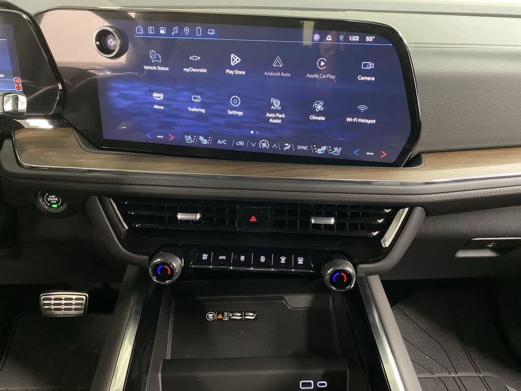 HIGH COUNTRY DELUXE includes (C3U) Panoramic power sunroof, (B3L) power-retractable assist steps with perimeter lighting, (F47) Air Ride Adaptive suspension and (NHT) Max Trailering Package, LPO, GET ACTIVE PACKAGE includes (SBZ) Sport Pedal Cover Kit, LPO, (VRS) cargo security shade, LPO and (VTB) rear bumper protector, LPO (dealer-installed), TECHNOLOGY PACKAGE Includes (NWM) Advanced Security Package content and (TCP) AutoSense power liftgate.), SUSPENSION, AIR RIDE ADAPTIVE, TRANSMISSION, 10-SPEED AUTOMATIC electronically controlled with overdrive, includes Traction Select System including tow/haul, ADVANCED SECURITY PACKAGE includes (UTR) self-powered horn, (UTV) interior movement sensors, (UTU) vehicle inclination sensors, (UTW) glass break sensors in rear quarter glass and liftgate window and door and liftgate lock shields, AUDIO SYSTEM, 17.7 DIAGONAL ADVANCED COLOR LCD DISPLAY with Google built-in compatibility (select service plan required, terms and limitations apply), including navigation capability, connected apps, personalized profiles for each drivers settings, Natural Voice Recognition and Phone Integration (STD), ADVANCED TRAILERING PACKAGE includes (UKW) Blind Zone Steering Assist with Trailering, (PZ8) Hitch View and (UET) Smart Trailer Integration Indicator, ENGINE, DURAMAX 3.0L TURBO-DIESEL (305 hp [227 kW] @ 3750 rpm, 495 lb-ft of torque [671 Nm] @ 2750 rpm). MP3 Player, Keyless Entry, Privacy Glass, Child Safety Locks, Steering Wheel Controls.