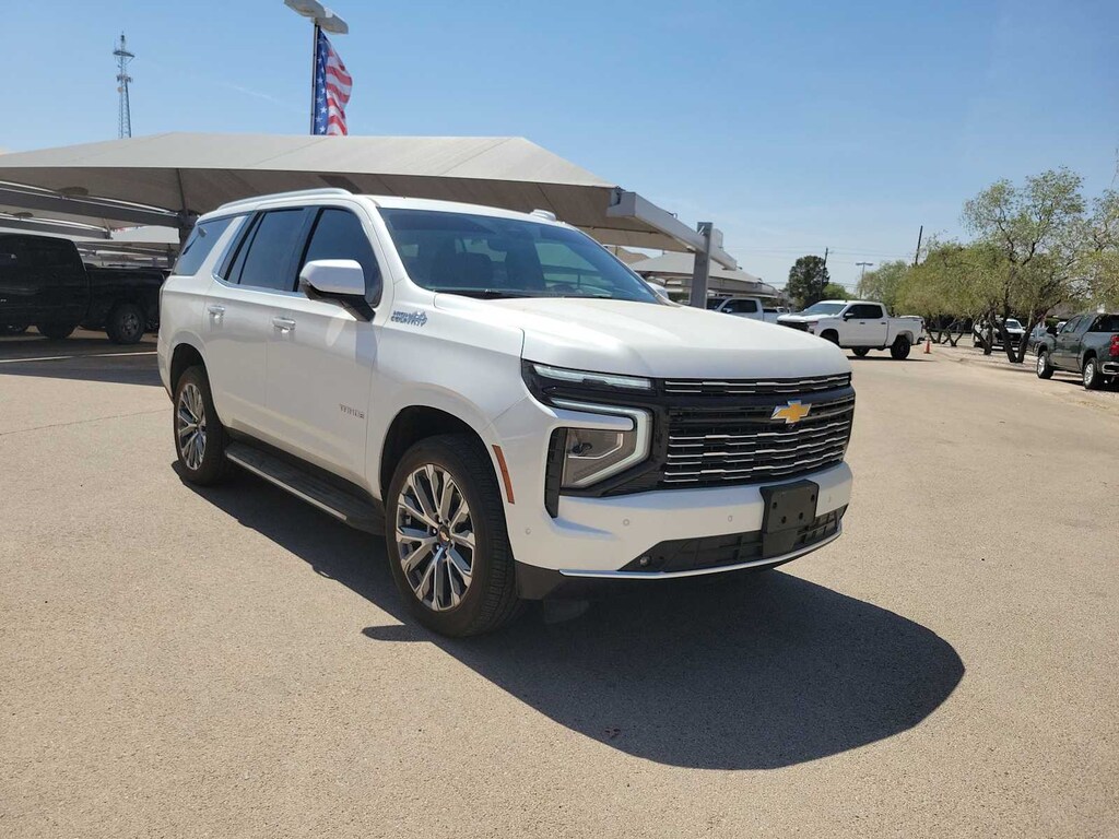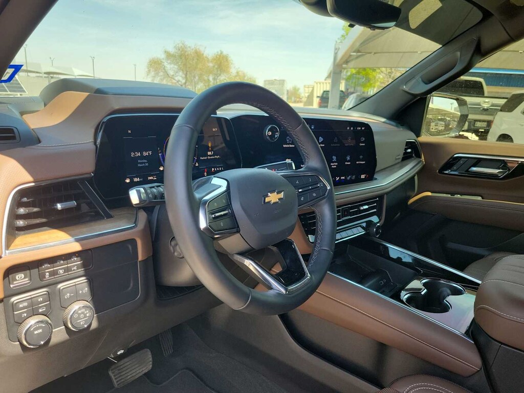 ENGINE, 6.2L ECOTEC3 V8 with Dynamic Fuel Management, Direct Injection and Variable Valve Timing, includes aluminum block construction (420 hp [313 kW] @ 5600 rpm, 460 lb-ft of torque [624 Nm] @ 4100 rpm) (STD), TRANSMISSION, 10-SPEED AUTOMATIC electronically controlled with overdrive, includes Traction Select System including tow/haul (STD), AUDIO SYSTEM, 17.7 DIAGONAL ADVANCED COLOR LCD DISPLAY with Google built-in compatibility (select service plan required, terms and limitations apply), including navigation capability, connected apps, personalized profiles for each drivers settings, Natural Voice Recognition and Phone Integration (STD), SUSPENSION, MAGNETIC RIDE CONTROL. Chevrolet High Country with Iridescent Pearl Tricoat exterior and Jet Black/Mocha interior features a 8 Cylinder Engine with 420 HP at 5600 RPM*.