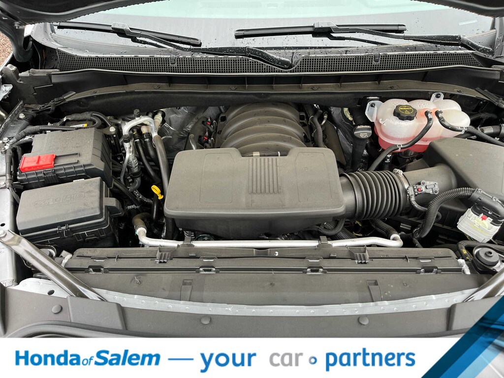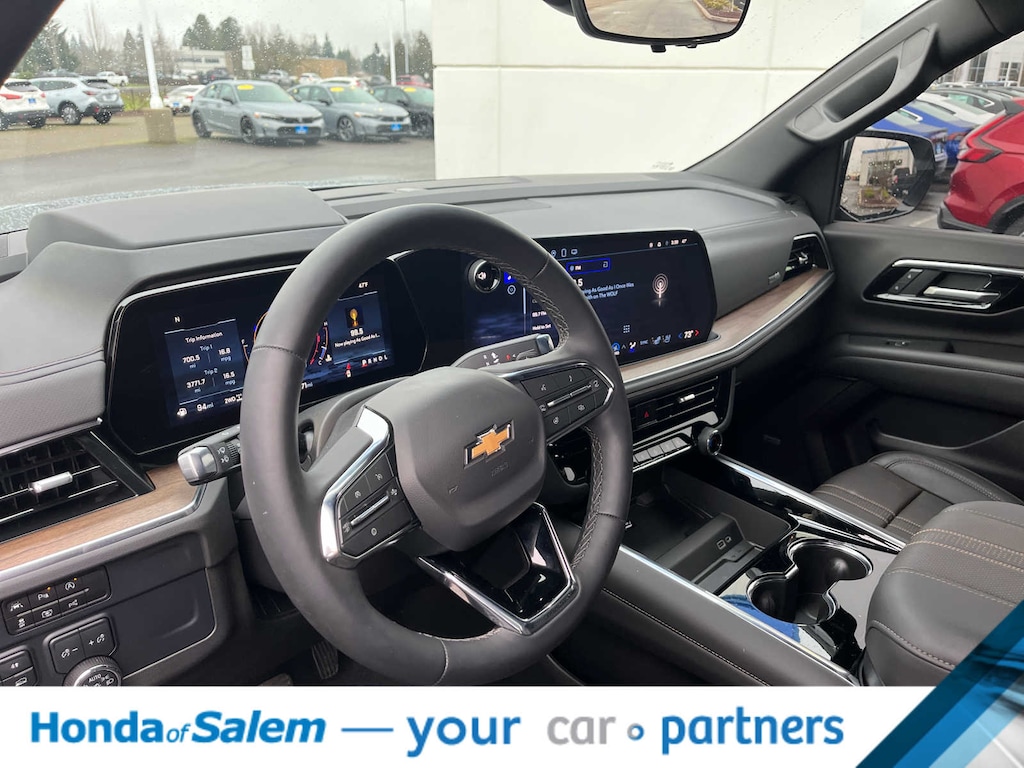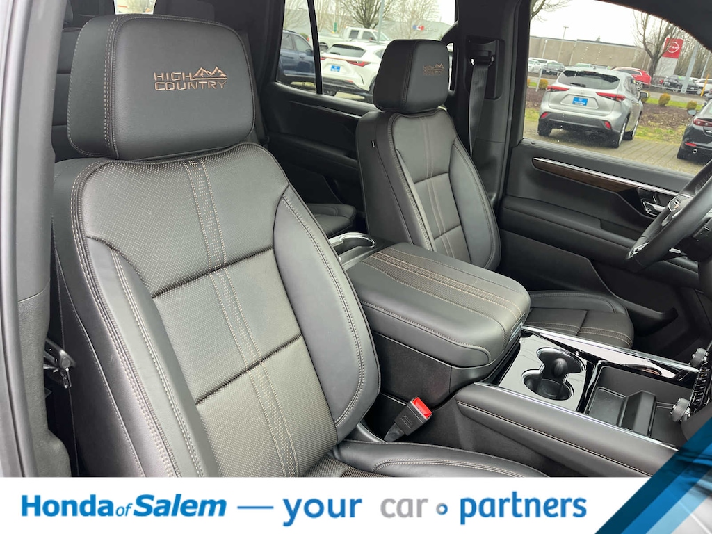with Dynamic Fuel Management, Direct Injection and Variable Valve Timing, includes aluminum block construction (420 hp [313 kW] @ 5600 rpm, 460 lb-ft of torque [624 Nm] @ 4100 rpm) (STD), electronically controlled with overdrive, includes Traction Select System including tow/haul (STD), with Google built-in compatibility (select service plan required, terms and limitations apply), including navigation capability, connected apps, personalized profiles for each drivers settings, Natural Voice Recognition and Phone Integration (STD), SUSPENSION, MAGNETIC RIDE CONTROL. Chevrolet High Country with Sterling Gray Metallic exterior and Jet Black interior features a 8 Cylinder Engine with 420 HP at 5600 RPM*.