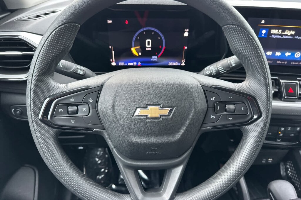 AUDIO SYSTEM, 11 DIAGONAL HD COLOR TOUCHSCREEN, AM/FM STEREO. Additional features for compatible phones include: Bluetooth® audio streaming for 2 active devices, voice command pass-through to phone, wireless Apple CarPlay® and wireless Android Auto® capable (STD), ENGINE, ECOTEC 1.3L I3 TURBO DOHC SIDI WITH VARIABLE VALVE TIMING (VVT) (155 hp [115 kW] @ 5600 rpm, 174 lb-ft torque [236 N-m] @ 1600 rpm) (STD), TRANSMISSION, 9-SPEED AUTOMATIC (STD). Chevrolet LT with Summit White exterior and Jet Black interior features a 3 Cylinder Engine with 155 HP at 5600 RPM*.