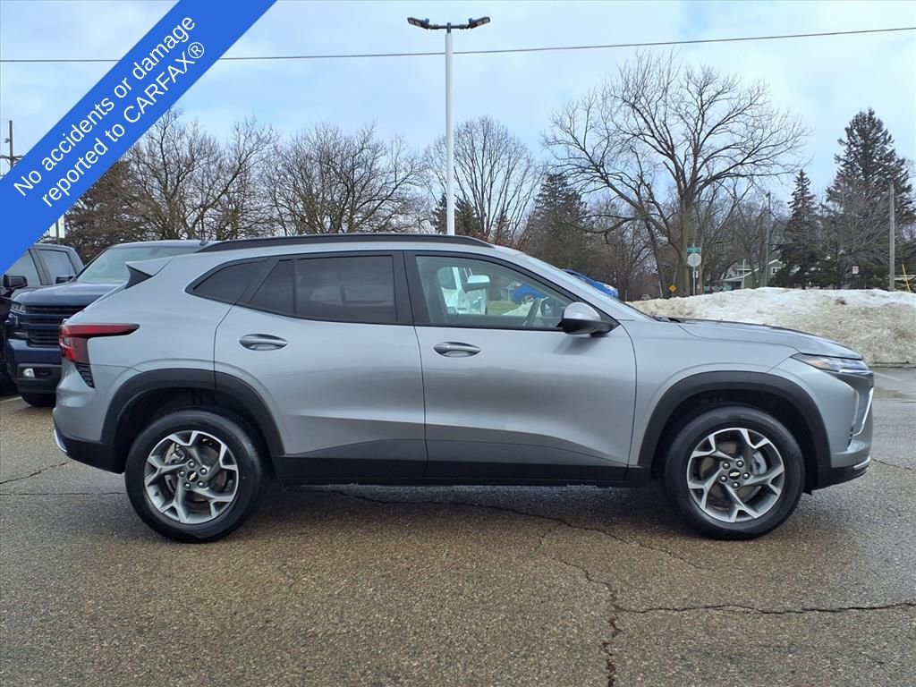 Our bold, Accident Free, One Owner 2025 Chevrolet Trax LT is better by design in Sterling Gray Metallic! Powered by a TurboCharged 1.2 Liter 3 Cylinder serving up 137hp to a 6 Speed Automatic transmission for living life at your own pace. Agile and responsive, this Front Wheel Drive SUV also sees nearly 32mpg on the highway with impressive fuel economy in town, too. Get ready to turn heads as you go by since our Trax shows off signature LED lighting, silver-painted bumper accents, roof rails, a rear spoiler, a front recovery hook, and stylish alloy wheels.Versatility is vital in any SUV, and you'll find plenty in our LT cabin. It keeps you comfortable with supportive cloth/Evotex heated front seats, a multifunction heated steering wheel, automatic climate control, a 12V power outlet, remote start, keyless entry/ignition, cruise control, and an eye-catching digital dashboard with an 11-inch touchscreen and an 8-inch driver display. Connections come easy with wireless Android Auto®/Apple CarPlay®, WiFi compatibility, Bluetooth®, and a six-speaker sound system.Chevrolet helps you deal with difficult situations by offering smart technology like automatic braking, pedestrian detection, lane-keeping assistance, forward collision warning, an HD rearview camera, a rear seat reminder, tire pressure monitoring, and more. Try our Trax LT to discover a compact SUV that commands respect! Save this Page and Call for Availability. We Know You Will Enjoy Your Test Drive Towards Ownership! Our professional and well-trained staff is ready to assist you with your automotive needs. Call us at 877-246-0606 or stop by the dealership at 3515 Jackson Road, Ann Arbor, MI to set up a test drive!