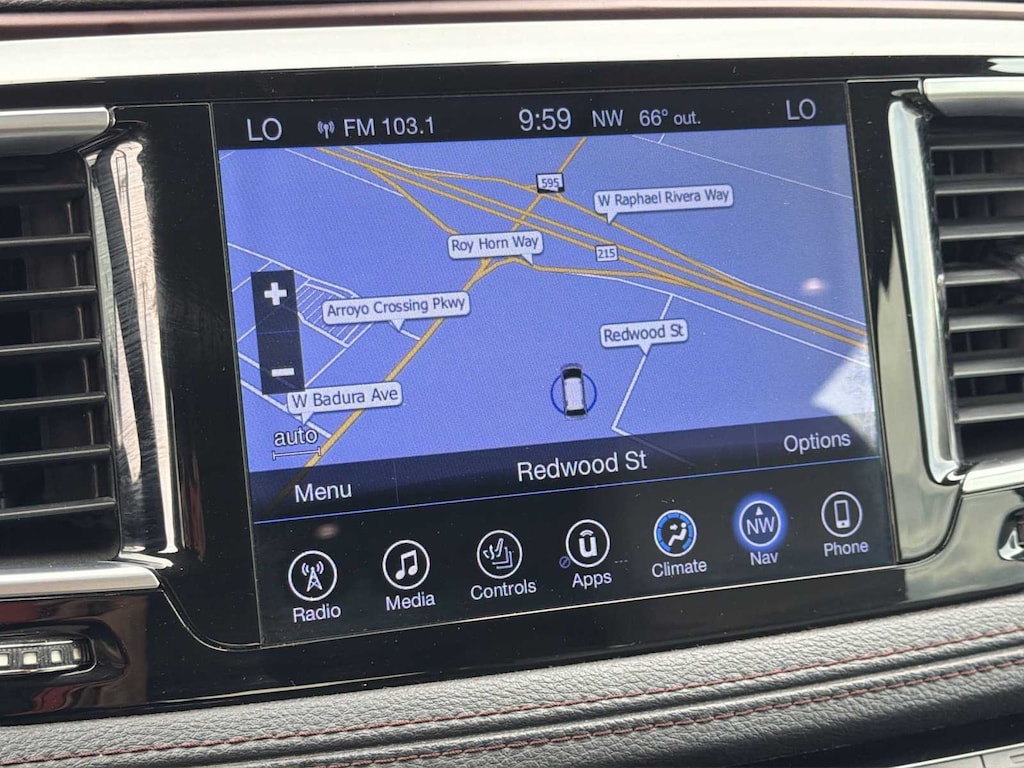 THIS VEHICLE ALSO IS EQUIPPED WITH THE FOLLOWING OPTIONS AND FEATURES: Advanced SafetyTec Group (360 Surround View Camera System, Adaptive Cruise Control w/Stop & Go, Advanced Brake Assist, Automatic High Beam Headlamp Control, Full Speed Forward Collision Warning Plus, Lane Departure Warning Plus, Parallel & Perp Park Assist w/Stop, ParkSense Front/Rear Park Assist w/Stop, and Rain Sensitive Windshield Wipers), Quick Order Package 25P (DISC), Tire & Wheel Group, Uconnect Theater Package (115V Auxiliary Power Outlet, 220 Amp Alternator, 3-Channel Video Remote Control, 3-Channel Wireless Headphones, Blu-Ray/DVD Player/USB Port, High Definition Multimedia Interface, Seatback Video Screens, and Video USB Port), 1-Yr Trial (Registration Required), 13 Speakers, 20 x 7.5 Aluminum Wheels, 3.25 Axle Ratio, 3rd row seats: split-bench, 4-Wheel Disc Brakes, 8.4 Touchscreen Display, ABS brakes, Air Conditioning, Alloy wheels, AM/FM radio: SiriusXM, Audio memory, Auto-dimming door mirrors, Auto-dimming Rear-View mirror, Automatic temperature control, Bodyside moldings, Brake assist, Bumpers: body-color, Compass, Delay-off headlights, Driver door bin, Driver vanity mirror, Drivers Seat Mounted Armrest, Dual front impact airbags, Dual front side impact airbags, Electronic Stability Control, Emergency communication system: Uconnect Access, Four wheel independent suspension, Front anti-roll bar, Front Bucket Seats, Front dual zone A/C, Front fog lights, Front reading lights, Fully automatic headlights, Garage door transmitter, GPS Antenna Input, GPS Navigation, HD Radio, Heated door mirrors, Heated front seats, Heated rear seats, Heated steering wheel, High-Intensity Discharge Headlights, Illuminated entry, Integrated Voice Command w/Bluetooth, Knee airbag, Leather steering wheel, Low tire pressure warning, Memory seat, Navigation System, Occupant sensing airbag, Outside temperature display, Overhead airbag, Overhead console, Panic alarm, ParkView Rear Back-Up Camera, Passenger door bin, Passenger seat mounted armrest, Passenger vanity mirror, Power door mirrors, Power driver seat, Power Liftgate, Power moonroof, Power passenger seat, Power steering, Power windows, Premium Leather Trim Bucket Seats, Radio data system, Radio: Uconnect 3C Nav w/8.4 Display, Rear air conditioning, Rear reading lights, Rear window defroster, Rear window wiper, Reclining 3rd row seat, Remote keyless entry, Roof rack, Security system, SiriusXM Satellite Radio, SiriusXM Traffic, SiriusXM Travel Link, Speed control, Split folding rear seat, Spoiler, Steering wheel mounted audio controls, Tachometer, Telescoping steering wheel, Tilt steering wheel, Touring Suspension, Traction control, Trip computer, Turn signal indicator mirrors, Uconnect Access, Variably intermittent wipers, Ventilated front seats, Voltmeter, and Wheels: 18 x 7.5 Aluminum Polished.