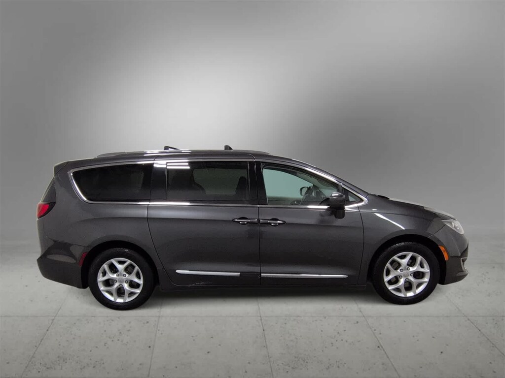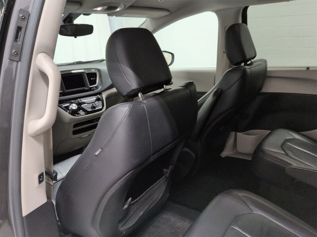 Pacifica Touring L is nicely equipped with Quick Order Package 27L, Tire & Wheel Group (18 x 7.5 Painted Aluminum Wheels and Nexen Brand Tires), 17 x 7.0 Aluminum Wheels, 3.25 Axle Ratio, 3rd row seats: split-bench, 4-Wheel Disc Brakes, 6 Speakers, ABS brakes, Air Conditioning, Alloy wheels, AM/FM radio: SiriusXM, Apple CarPlay, Apple CarPlay/Android Auto, Auto High-beam Headlights, Automatic temperature control, Black Seats, Bodyside moldings, Brake assist, Bumpers: body-color, Compass, Delay-off headlights, Driver door bin, Driver vanity mirror, Drivers Seat Mounted Armrest, Dual front impact airbags, Dual front side impact airbags, Electronic Stability Control, Emergency communication system: Uconnect Access, Four wheel independent suspension, Front anti-roll bar, Front Bucket Seats, Front dual zone A/C, Front fog lights, Front reading lights, Fully automatic headlights, Garage door transmitter, Google Android Auto, GPS Antenna Input, Heated door mirrors, Heated front seats, Illuminated entry, Integrated Voice Command w/Bluetooth, Knee airbag, Leather steering wheel, Low tire pressure warning, Manufacturers Statement of Origin, Occupant sensing airbag, Outside temperature display, Overhead airbag, Overhead console, Panic alarm, ParkView Rear Back-Up Camera, Passenger door bin, Passenger seat mounted armrest, Passenger vanity mirror, Perforated Leather Trim Bucket Seats, Power door mirrors, Power driver seat, Power Liftgate, Power steering, Power windows, Radio data system, Radio: Uconnect 4 w/7 Display, Rain sensing wipers, Rear air conditioning, Rear reading lights, Rear window defroster, Rear window wiper, Reclining 3rd row seat, Remote keyless entry, Roof rack, Security system, Single Rear Overhead DVD System, SiriusXM Satellite Radio, Speed control, Split folding rear seat, Spoiler, Steering wheel mounted audio controls, Tachometer, Telescoping steering wheel, Tilt steering wheel, Touring Suspension, Traction control, Trip computer, USB Host Flip, Variably intermittent wipers, Voltmeter, and Wheels: 18 x 7.5 Aluminum (DISC)