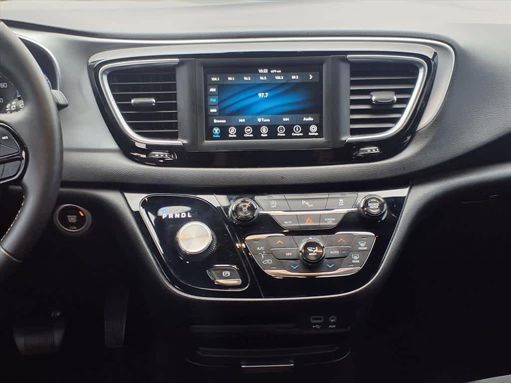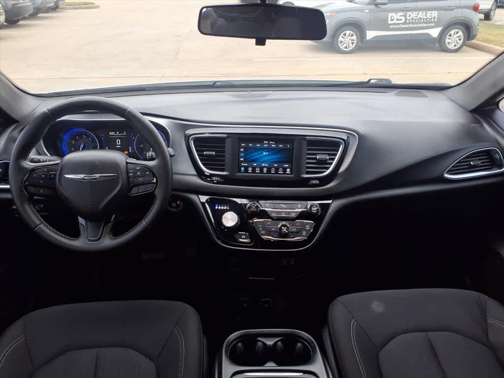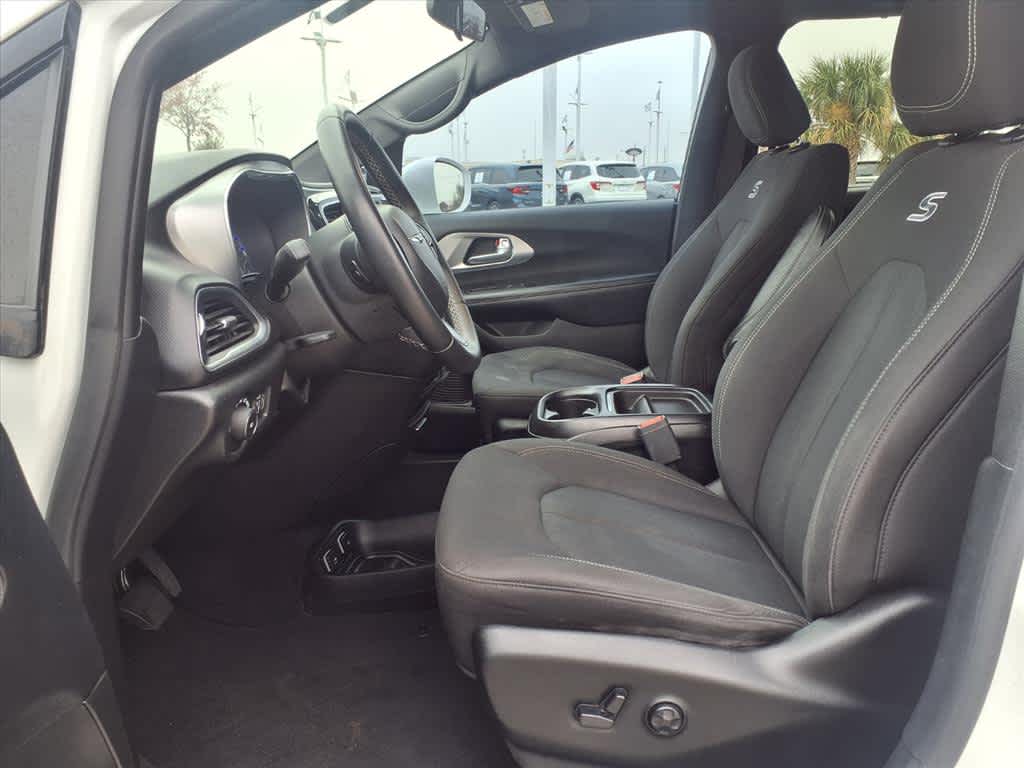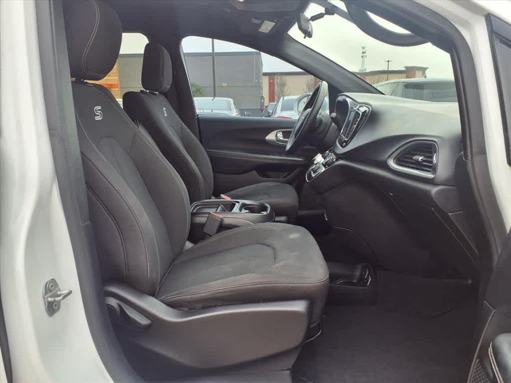 17 x 7.0 Aluminum Wheels, 1st Row Soft Seatback, 3.25 Axle Ratio, 3rd row seats: split-bench, 4-Wheel Disc Brakes, 6 Speakers, ABS brakes, Air Conditioning, Alloy wheels, AM/FM radio: SiriusXM, Apple CarPlay, Apple CarPlay/Android Auto, Automatic temperature control, Black Badging, Black Chrysler Grille Wing Badge, Black Day Light Opening Moldings, Black Seats, Black Spear Applique - Rear Fascia, Blind Spot & Cross Path Detection, Body Color Door Handles, Brake assist, Bridgestone Brand Tires, Bumpers: body-color, Cloth Bucket Seats, Cloth Bucket Seats w/S Logo, Compass, Delay-off headlights, Driver door bin, Driver vanity mirror, Drivers Seat Mounted Armrest, Dual front impact airbags, Dual front side impact airbags, Electronic Stability Control, Falken Brand Tires, Four wheel independent suspension, Front anti-roll bar, Front Bucket Seats, Front dual zone A/C, Front fog lights, Front reading lights, Fully automatic headlights, Garage door transmitter, Google Android Auto, GPS Antenna Input, Heated door mirrors, Illuminated entry, Integrated Voice Command w/Bluetooth, KeySense, Knee airbag, Leather Wrapped Steering Wheel, Low tire pressure warning, Occupant sensing airbag, Outside temperature display, Overhead airbag, Overhead console, Panic alarm, ParkSense Rear Park Assist w/Stop, ParkView Rear Back-Up Camera, Passenger door bin, Passenger seat mounted armrest, Passenger vanity mirror, Power door mirrors, Power driver seat, Power Liftgate, Power steering, Power windows, Quick Order Package 27W, Radio data system, Radio: Uconnect 4 w/7 Display, Rear air conditioning, Rear reading lights, Rear window defroster, Rear window wiper, Reclining 3rd row seat, Remote keyless entry, S Appearance Package, S Badge, SafetyTec (DISC), Security system, Single Rear Overhead DVD System, SiriusXM Satellite Radio, Speed control, Split folding rear seat, Spoiler, Steering wheel mounted audio controls, Tachometer, Telescoping steering wheel, Tilt steering wheel, Touring Suspension, Traction control, Trip computer, Upper/Lower Grilles/Blk Surrounds Premium Fascia, USB Host Flip, Variably intermittent wipers, Voltmeter, Wheels: 18 x 7.5 Aluminum Black Noise, Wheels: 20 x 7.5 Aluminum Black Noise.