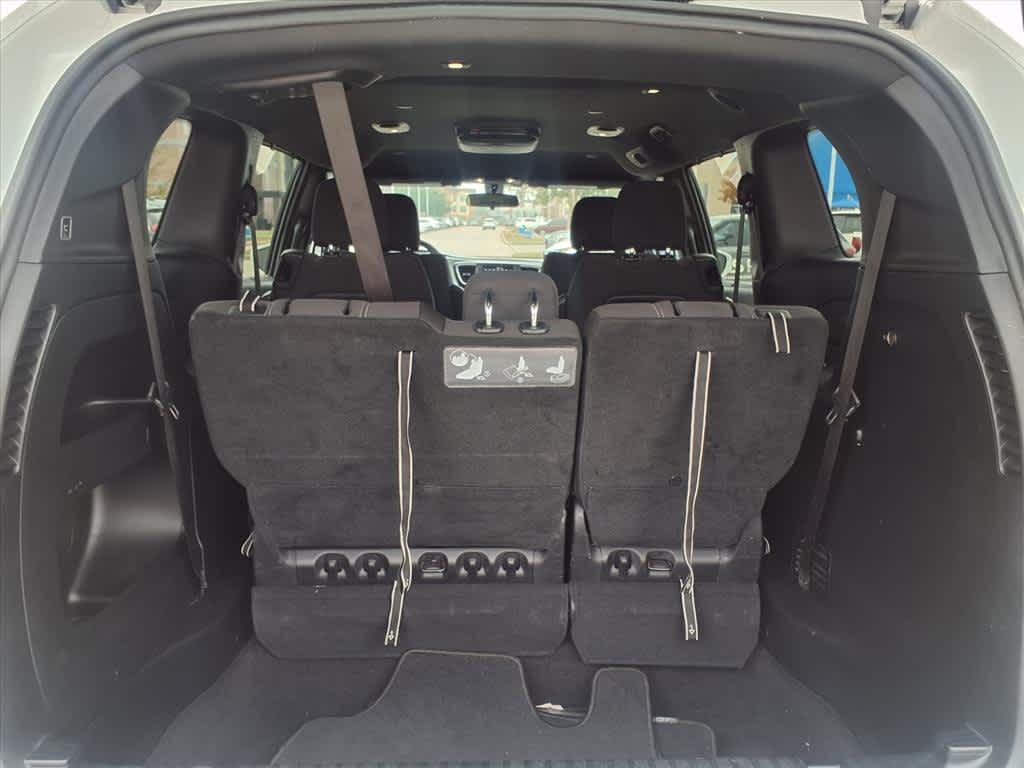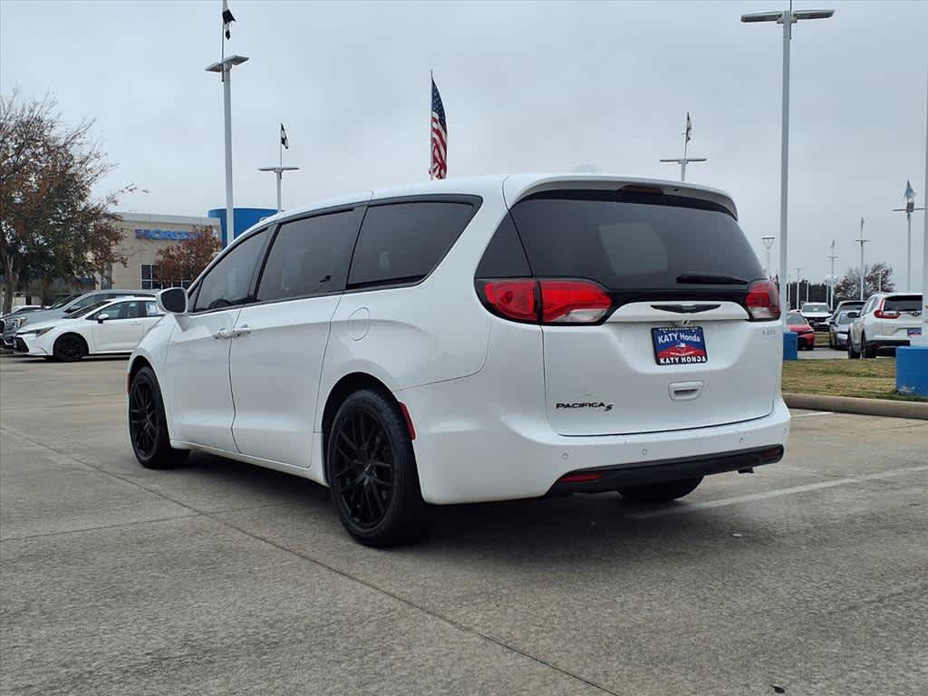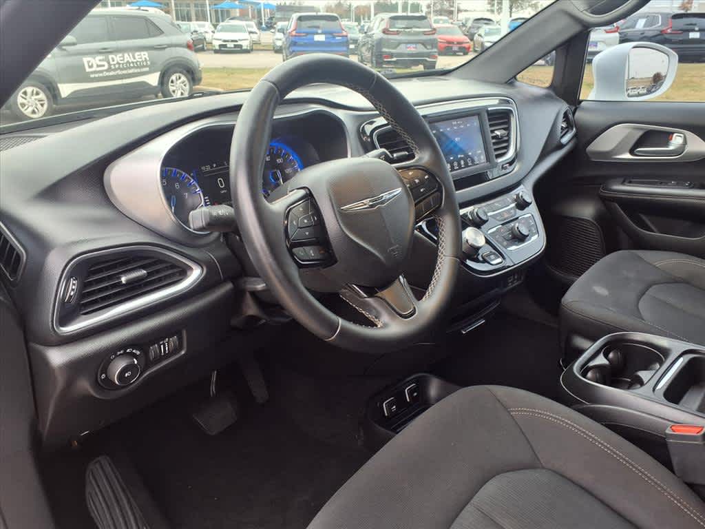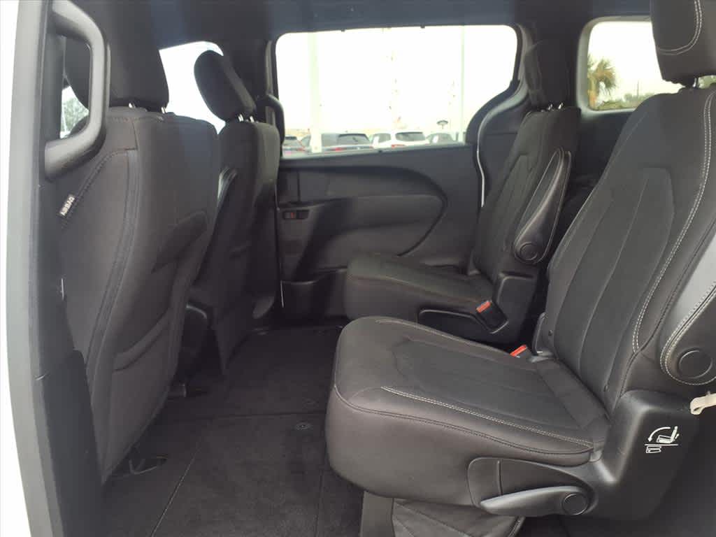 17 x 7.0 Aluminum Wheels, 1st Row Soft Seatback, 3.25 Axle Ratio, 3rd row seats: split-bench, 4-Wheel Disc Brakes, 6 Speakers, ABS brakes, Air Conditioning, Alloy wheels, AM/FM radio: SiriusXM, Apple CarPlay, Apple CarPlay/Android Auto, Automatic temperature control, Black Badging, Black Chrysler Grille Wing Badge, Black Day Light Opening Moldings, Black Seats, Black Spear Applique - Rear Fascia, Blind Spot & Cross Path Detection, Body Color Door Handles, Brake assist, Bridgestone Brand Tires, Bumpers: body-color, Cloth Bucket Seats, Cloth Bucket Seats w/S Logo, Compass, Delay-off headlights, Driver door bin, Driver vanity mirror, Drivers Seat Mounted Armrest, Dual front impact airbags, Dual front side impact airbags, Electronic Stability Control, Falken Brand Tires, Four wheel independent suspension, Front anti-roll bar, Front Bucket Seats, Front dual zone A/C, Front fog lights, Front reading lights, Fully automatic headlights, Garage door transmitter, Google Android Auto, GPS Antenna Input, Heated door mirrors, Illuminated entry, Integrated Voice Command w/Bluetooth, KeySense, Knee airbag, Leather Wrapped Steering Wheel, Low tire pressure warning, Occupant sensing airbag, Outside temperature display, Overhead airbag, Overhead console, Panic alarm, ParkSense Rear Park Assist w/Stop, ParkView Rear Back-Up Camera, Passenger door bin, Passenger seat mounted armrest, Passenger vanity mirror, Power door mirrors, Power driver seat, Power Liftgate, Power steering, Power windows, Quick Order Package 27W, Radio data system, Radio: Uconnect 4 w/7 Display, Rear air conditioning, Rear reading lights, Rear window defroster, Rear window wiper, Reclining 3rd row seat, Remote keyless entry, S Appearance Package, S Badge, SafetyTec (DISC), Security system, Single Rear Overhead DVD System, SiriusXM Satellite Radio, Speed control, Split folding rear seat, Spoiler, Steering wheel mounted audio controls, Tachometer, Telescoping steering wheel, Tilt steering wheel, Touring Suspension, Traction control, Trip computer, Upper/Lower Grilles/Blk Surrounds Premium Fascia, USB Host Flip, Variably intermittent wipers, Voltmeter, Wheels: 18 x 7.5 Aluminum Black Noise, Wheels: 20 x 7.5 Aluminum Black Noise.