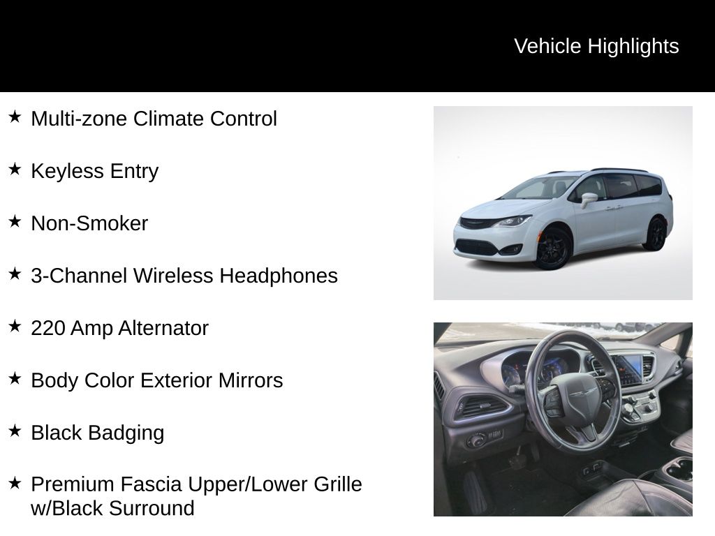 **Super Clean and Well Taken Care Of**, Bluetooth, Hands-Free, Leather Seats, Heated Seats, Steering Wheel Controls, Multi-zone Climate Control, Keyless Entry, Non-Smoker, 115V Auxiliary Power Outlet, 220 Amp Alternator, 3-Channel Video Remote Control, 3-Channel Wireless Headphones, Black Badging, Black Chrysler Grille Wing Badge, Black Day Light Opening Moldings, Black Spear Rear Fascia Applique, Black Stow N Place Roof Rack, Blu-Ray/DVD Player/USB Port, Body Color Door Handles, Body Color Exterior Mirrors, High Definition Multimedia Interface, Premium Fascia Upper/Lower Grille w/Black Surround, Quick Order Package 27P, S Appearance Package, Seatback Video Screens, Uconnect Theater w/Streaming, Video USB Port. Priced below KBB Fair Purchase Price! 19/28 City/Highway MPG