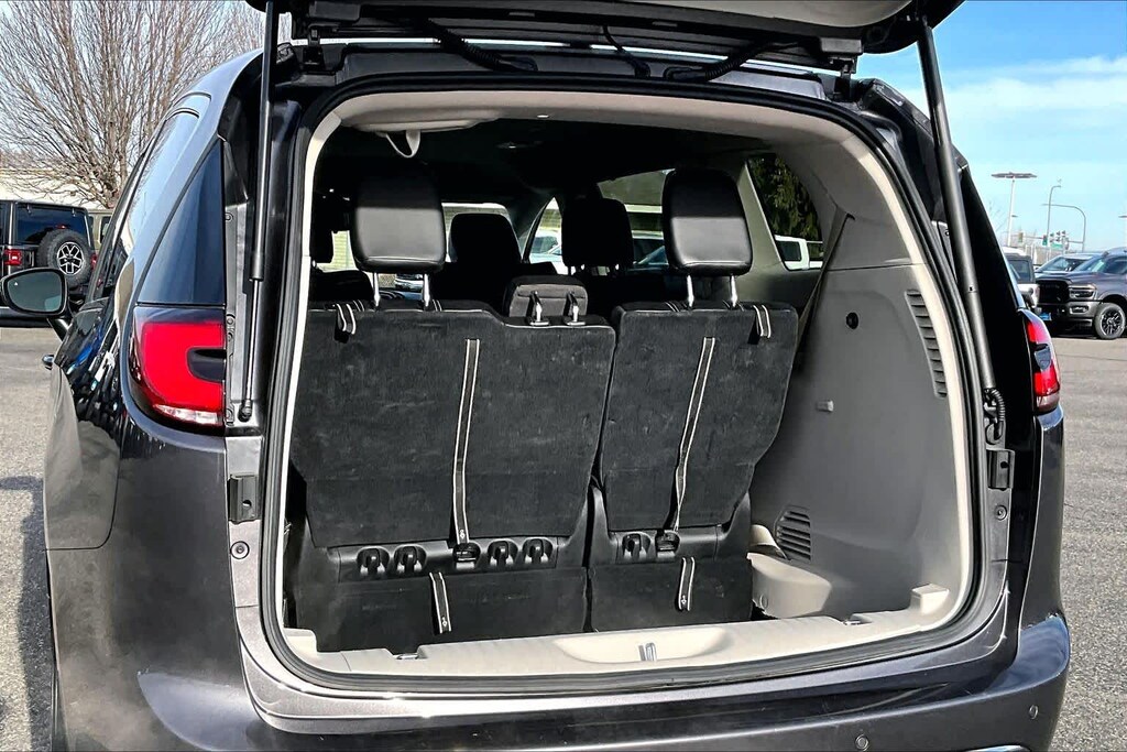 Lithia Chrysler Dodge Jeep Ram of Tri-Cities is pleased to offer this Granite Crystal Metallic Clearcoat 2023 Chrysler Pacifica Touring L for purchase, this vehicle is well equipped with many features including:Quick Order Package 27L, 10.1 Touchscreen Display, 17 x 7.0 Aluminum Wheels, 3.25 Axle Ratio, 3rd row seats: split-bench, 4-Wheel Disc Brakes, 6 Speakers, ABS brakes, Air Conditioning, Alloy wheels, AM/FM radio: SiriusXM, Apple CarPlay, Apple CarPlay/Android Auto, Audio memory, Automatic temperature control, Black Seats, Brake assist, Bumpers: body-color, Caprice Leatherette Bucket Seats, Compass, Delay-off headlights, Disassociated Touchscreen Display, Driver door bin, Driver vanity mirror, Drivers Seat Mounted Armrest, Dual front impact airbags, Dual front side impact airbags, Electronic Stability Control, Four wheel independent suspension, Front anti-roll bar, Front Bucket Seats, Front dual zone A/C, Front Fascia Air Deflectors, Front fog lights, Front reading lights, Fully automatic headlights, Google Android Auto, GPS Antenna Input, Heated door mirrors, Heated front seats, Heated steering wheel, Illuminated entry, Integrated Active Noise Cancellation, Integrated Center Stack Radio, Knee airbag, Low tire pressure warning, Memory seat, Occupant sensing airbag, Outside temperature display, Overhead airbag, Overhead console, Panic alarm, ParkView Rear Back-Up Camera, Passenger door bin, Passenger seat mounted armrest, Passenger vanity mirror, Power door mirrors, Power driver seat, Power Liftgate, Power steering, Power windows, Radio data system, Radio: Uconnect 5 w/10.1 Display, Rain sensing wipers, Rear air conditioning, Rear reading lights, Rear window defroster, Rear window wiper, Reclining 3rd row seat, Remote keyless entry, Security system, Speed control, Split folding rear seat, Spoiler, Steering wheel mounted audio controls, Tachometer, Telescoping steering wheel, Tilt steering wheel, Touring Suspension, Traction control, Trip computer, Turn signal indicator mirrors, USB Host Flip, Variably intermittent wipers, and Voltmeter. 2023 Chrysler Pacifica Touring L