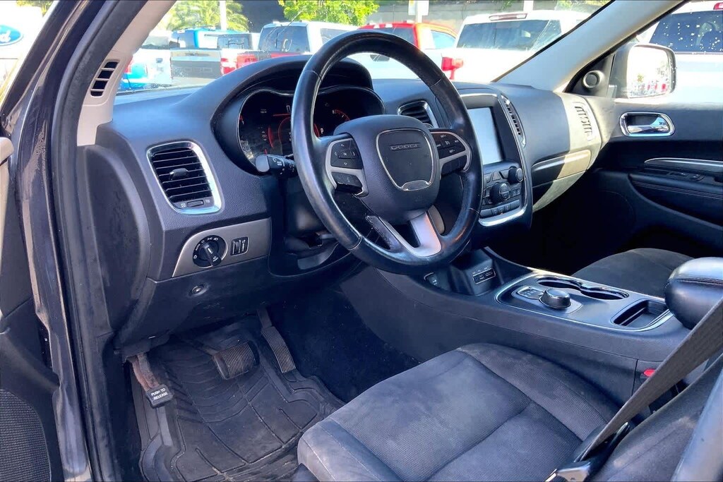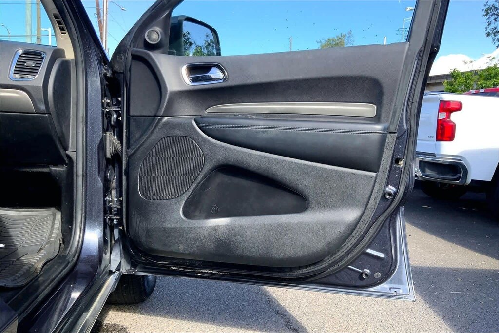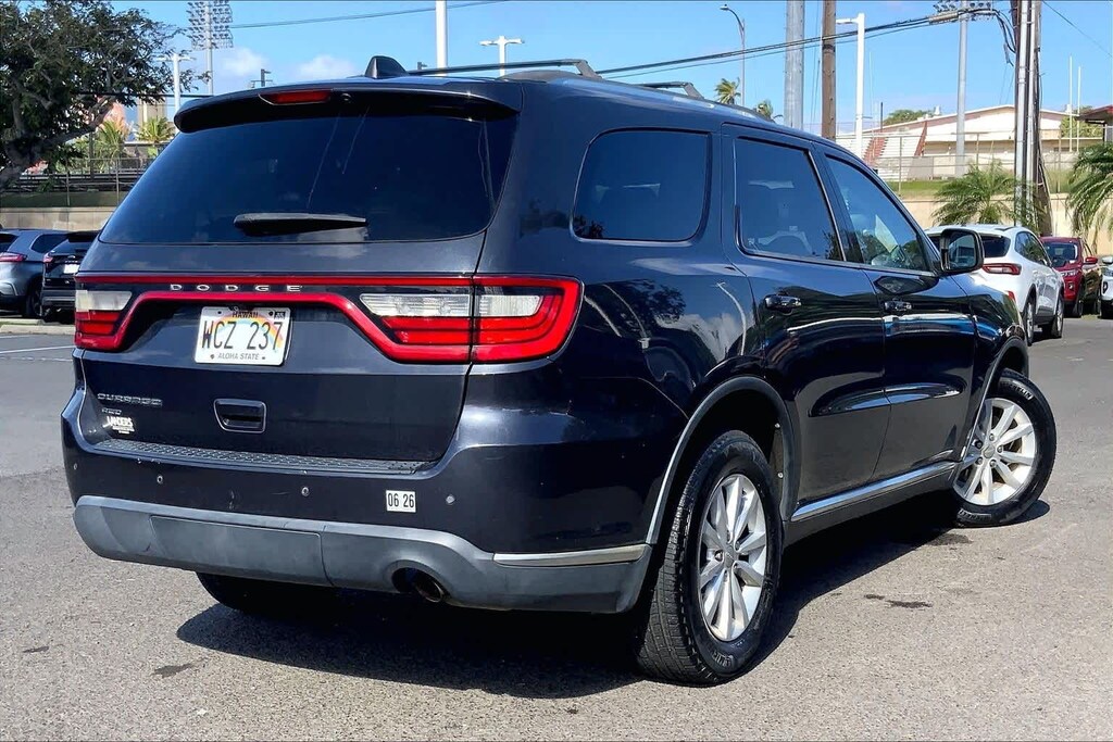 HONOLULU FORD! 808-532-1700, *DONT WAIT! CALL NOW!!, FINANCING AVAILABLE, GUARANTEED APPROVALS! LOW PAYMENTS! GREAT INTEREST RATES!, WE SHIP TO NEIGHBOR ISLANDS!, 172 POINT INSPECTION BY FACTORY TRAINED TECHNICIANS!, STATE SAFETY INSPECTION COMPLETE!, BLUETOOTH HANDS FREE CALLING, ACCIDENT FREE CARFAX!, BACK-UP CAMERA, EXTRA CLEAN, PREMIUM WHEELS, EXCELLENT CONDITION!, EXCELLENT SERVICE HISTORY!!, READY FOR YOU TO DRIVE HOME TODAY!, PARKING SENSORS, UPGRADED WHEELS, TOUCH SCREEN, AWD, 3.45 Rear Axle Ratio, 3rd row seats: split-bench, 4-Wheel Disc Brakes, 6 Mo. Trial (Registration Required), 6 Speakers, 8.4 Touchscreen Display, ABS brakes, Air Conditioning, Alloy wheels, AM/FM radio, Anti-whiplash front head restraints, Automatic temperature control, Brake assist, Bright Side Roof Rails, Bumpers: body-color, Cloth Low-Back Bucket Seats, Comfort Seating Group, Compass, Delay-off headlights, Driver door bin, Driver vanity mirror, Dual front impact airbags, Dual front side impact airbags, Electronic Stability Control, For Details Go To DriveUconnect.com, Four wheel independent suspension, Front anti-roll bar, Front Bucket Seats, Front Center Armrest w/Storage, Front dual zone A/C, Front fog lights, Front reading lights, Fully automatic headlights, GPS Antenna Input, Heated door mirrors, Heated Front Seats, Heated Steering Wheel, Illuminated entry, Integrated Roof Rail Crossbars, Integrated Voice Command w/Bluetooth, Knee airbag, Leather Wrapped Steering Wheel, Low tire pressure warning, Occupant sensing airbag, Outside temperature display, Overhead airbag, Overhead console, Panic alarm, ParkSense Rear Park Assist System, ParkView Rear Back-Up Camera, Passenger door bin, Passenger vanity mirror, Popular Equipment Group, Power 4-Way Driver Lumbar Adjust, Power 8-Way Driver/Manual Passenger Seat, Power door mirrors, Power steering, Power windows, Quick Order Package 23B, Radio: Uconnect 5.0 AM/FM/BT, Radio: Uconnect 8.4A AM/FM/SXM/BT, Rear air conditioning, Rear anti-roll bar, Rear reading lights, Rear seat center armrest, Rear window defroster, Rear window wiper, Rear-View Auto-Dimming Mirror w/Microphone, Remote keyless entry, Roadside Assistance & 9-1-1 Call, SIRIUSXM Satellite Radio, Speed control, Speed-Sensitive Wipers, Split folding rear seat, Spoiler, Steering wheel mounted audio controls, Tachometer, Telescoping steering wheel, Tilt steering wheel, Traction control, Trip computer, Uconnect Access, Variably intermittent wipers, Wheels: 18 x 8.0 Painted Aluminum, 4-Wheel Drive/All-Wheel Drive, AWD. Recent Arrival! Maximum Steel Metallic Clearcoat 2014 Dodge Durango SXT AWD 8-Speed Automatic 3.6L V6 Flex Fuel 24V VVT