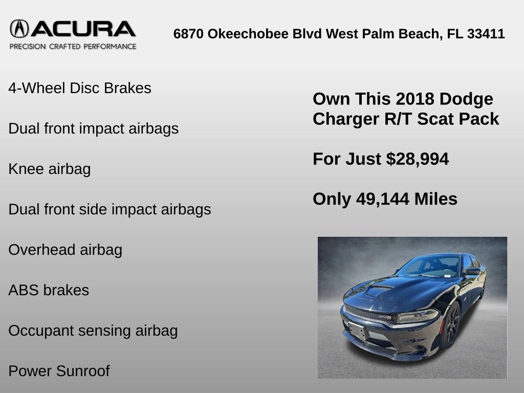 Recent Arrival! Pitch Black Clearcoat 2018 Dodge Charger 4D Sedan R/T Scat Pack SRT HEMI 6.4L V8 MDS RWD 8-Speed Automatic Odometer is 31221 miles below market average! Clean CARFAX.