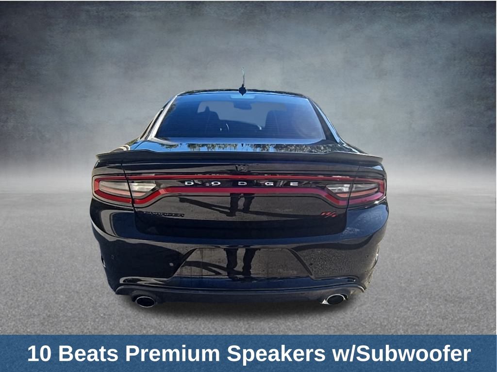 This Charger is well equipped with Beats Audio Group (10 Beats Premium Speakers w/Subwoofer and 552 Watt Amplifier), Quick Order Package 21W R/T Scat Pack, Charger R/T Scat Pack, 4D Sedan, SRT HEMI 6.4L V8 MDS, 8-Speed Automatic, RWD, Pitch Black Clearcoat, Black Artificial Leather, 1-Yr SiriusXM Guardian Trial, 4-Wheel Disc Brakes, 5-Year SiriusXM Traffic Service, 5-Year SiriusXM Travel Link Service, 6 Speakers, 8.4" Touchscreen Display, ABS brakes, Air Conditioning, Alloy wheels, AM/FM radio: SiriusXM, Anti-whiplash front head restraints, Apple CarPlay, Apple CarPlay/Android Auto, Auto-dimming Rear-View mirror, Automatic temperature control, Brake assist, Bumpers: body-color, Cargo Net, Compass, Delay-off headlights, Driver door bin, Driver vanity mirror, Dual front impact airbags, Dual front side impact airbags, Electronic Stability Control, Emergency communication system: SiriusXM Guardian, For Details, Visit DriveUconnect.com, Four wheel independent suspension, Front anti-roll bar, Front Bucket Seats, Front Center Armrest, Front dual zone A/C, Front fog lights, Front reading lights, Fully automatic headlights, Garage door transmitter: HomeLink, Google Android Auto, GPS Antenna Input, GPS Navigation, HD Radio, Illuminated entry, Integrated Center Stack Radio, Integrated Voice Command w/Bluetooth, Knee airbag, Leather Shift K