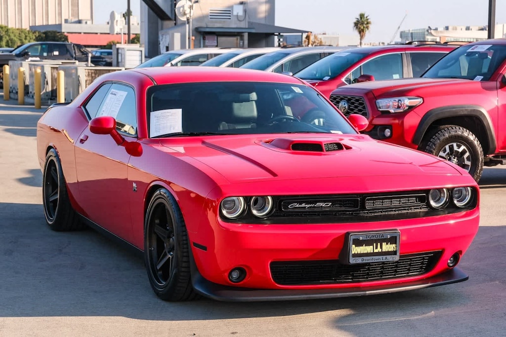 WELCOME TO TOYOTA OF DOWNTOWN LA... 2020 Dodge Challenger R/T Scat Pack Torred Clearcoat RWD 8-Speed Automatic SRT HEMI 6.4L V8 MDS 3.09 Rear Axle Ratio, 50th Anniversary Limited Edition (DISC), 50th Anniversary Numbered IP Badge, 6 Speakers, AM/FM radio: SiriusXM, Body Color Shaker Hood Scoop, GPS Antenna Input, HD Radio, Integrated Center Stack Radio, Media Hub (2 USB, AUX), MOPAR Shaker Hood, MOPAR Shaker Intake, ParkView Rear Back-Up Camera, Power steering, Power windows, Quick Order Package 24T R/T Scat Pack 50th Ann, Radio data system, Radio: Uconnect 4C w/8.4 Display, Remote keyless entry, Satin Black Hood Paint, SiriusXM Satellite Radio, Steering wheel mounted audio controls, Underhood Shaker Decal, Wheels: 20 x 9 Lo Gloss Granite Crystal. Clean CARFAX.