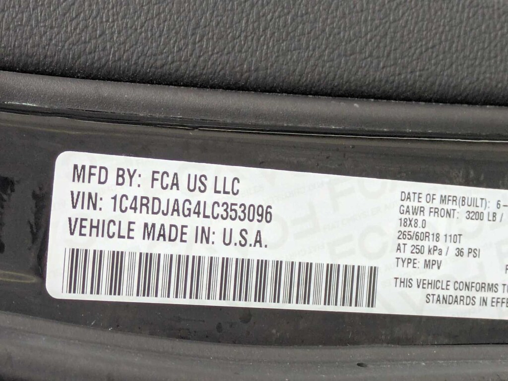 DB Black Crystal Clearcoat 2020 Dodge Durango SXT Plus AWD 8-Speed Automatic 3.6L V6 24V VVT