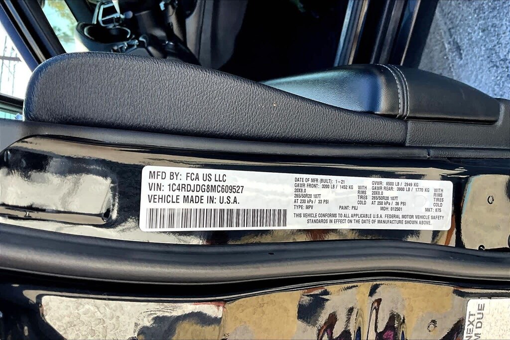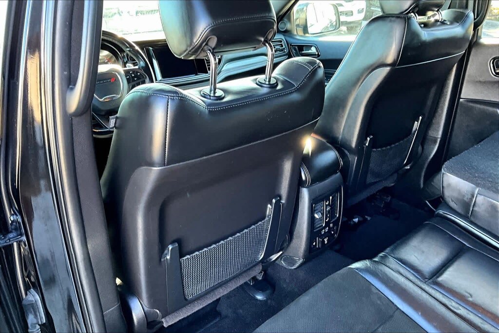 FRESH OIL CHANGE, AWD, 115V Auxiliary Power Outlet, 180 Amp Alternator, 3.45 Rear Axle Ratio, 3rd row seats: split-bench, 4-Wheel Disc Brakes, 6 Speakers, ABS brakes, Air Conditioning, Alloy wheels, AM/FM radio: SiriusXM, Anti-whiplash front head restraints, Apple CarPlay, Apple CarPlay/Android Auto, Auto-Dimming Exterior Driver Mirror, Auto-dimming Rear-View mirror, Automatic temperature control, Brake assist, Bumpers: body-color, Cloth Bucket Seats w/Shift Insert, Compass, Delay-off headlights, Driver door bin, Driver vanity mirror, Dual front impact airbags, Dual front side impact airbags, Dual Remote USB Port - Charge Only, Electronic Stability Control, Exterior Mirrors w/Memory, Exterior Mirrors w/Supplemental Signals, Four wheel independent suspension, Front anti-roll bar, Front Bucket Seats, Front Center Armrest w/Storage, Front dual zone A/C, Front fog lights, Front License Plate Bracket, Front reading lights, Fully automatic headlights, Google Android Auto, GPS Antenna Input, Heated door mirrors, Heated Front Seats, Heated Second Row Seats, Heated Steering Wheel, Illuminated entry, Integrated Center Stack Radio, Integrated Voice Command w/Bluetooth, Knee airbag, Leather steering wheel, Leather Suede Bucket Seats, Low tire pressure warning, Manufacturers Statement of Origin, Occupant sensing airbag, Outside temperature display, Overhead airbag, Overhead console, Panic alarm, ParkView Rear Back-Up Camera, Passenger door bin, Passenger vanity mirror, Power 6x9 Multi-Function Foldaway Mirrors, Power 8-Way Driver Memory 6-Way Passenger Seats, Power door mirrors, Power driver seat, Power Driver/Passenger 4-Way Lumbar Adjust, Power Liftgate, Power steering, Power windows, Quick Order Package 2BE GT Plus, Radio data system, Radio: Uconnect 4 w/8.4 Display, Radio/Driver Seat/Mirrors Memory, Rear air conditioning, Rear anti-roll bar, Rear reading lights, Rear seat center armrest, Rear window defroster, Rear window wiper, Remote keyless entry, Remote Start System, Security Alarm, SiriusXM Satellite Radio, Speed control, Speed-sensing steering, Speed-Sensitive Wipers, Split folding rear seat, Spoiler, Steering wheel mounted audio controls, Sun Visors w/Illuminated Vanity Mirrors, Tachometer, Telescoping steering wheel, Tilt steering wheel, Traction control, Trip computer, Tungsten Accent Stitching, Tungsten Interior Accent Stitch, Universal Garage Door Opener, USB Host Flip, Variably intermittent wipers, Voltmeter, Wheels: 20 x 8.0 Fine Silver, AWD. DB Black Crystal Clearcoat 2021 Dodge Durango GT Plus AWD 8-Speed Automatic 3.6L V6 24V VVT