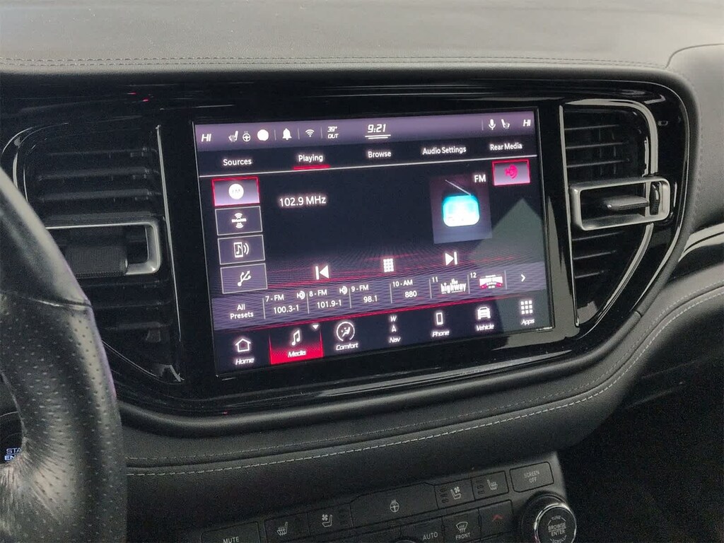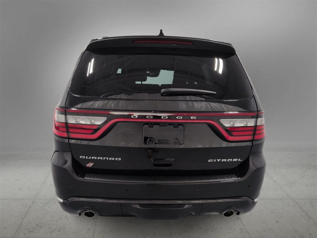 Durango Citadel is nicely equipped with Anodized Platinum Appearance Package, Premium Entertainment Group (19 harman/kardon Amplified Speakers w/Subwoofer, 825 Watt Amplifier, Blu-Ray Compatible Dual Screen Video, and Rear-Seat Video System), Quick Order Package 22P, AWD, 10.1 Touchscreen Display, 3rd row seats: split-bench, 4-Wheel Disc Brakes, 4G LTE Wi-Fi Hot Spot, 9 Speakers, ABS brakes, Air Conditioning, Alloy wheels, AM/FM radio: SiriusXM w/360L, Anti-whiplash front head restraints, Apple CarPlay, Apple CarPlay/Android Auto, Audio memory, Auto High-beam Headlights, Auto-dimming door mirrors, Auto-dimming Rear-View mirror, Auto-leveling suspension, Automatic temperature control, Brake assist, Bumpers: body-color, Compass, Connected Travel & Traffic Services, Delay-off headlights, Disassociated Touchscreen Display, Driver door bin, Driver vanity mirror, Dual front impact airbags, Dual front side impact airbags, Electronic Stability Control, Emergency communication system: SiriusXM Guardian, Four wheel independent suspension, Front anti-roll bar, Front Bucket Seats, Front Center Armrest w/Storage, Front dual zone A/C, Front fog lights, Front License Plate Bracket, Front reading lights, Fully automatic headlights, Garage door transmitter, Global Telematics Box Module (TBM), Google Android Auto, GPS Antenna Input, GPS Navigation, HD Radio, Heated door mirrors, Heated front seats, Heated rear seats, Heated steering wheel, Heavy-Duty Engine Cooling, Illuminated entry, Integrated Center Stack Radio, Integrated Voice Command w/Bluetooth, Knee airbag, Leather steering wheel, Low tire pressure warning, Memory seat, Nappa/Axis II Seats w/Rhombi Logo, Navigation system: TomTom, Occupant sensing airbag, Outside temperature display, Overhead airbag, Overhead console, Panic alarm, ParkView Rear Back-Up Camera, Passenger door bin, Passenger vanity mirror, Power door mirrors, Power driver seat, Power Liftgate, Power moonroof, Power passenger seat, Power steering, Power windows, Radio data system, Radio: Uconnect 5 Nav w/10.1 Display, Rain sensing wipers, Rear air conditioning, Rear anti-roll bar, Rear reading lights, Rear seat center armrest, Rear window defroster, Rear window wiper, Remote keyless entry, Roof rack, Security system, SiriusXM Guardian - Included Trial (B), SiriusXM Satellite Radio, SiriusXM w/360L, Speed control, Speed-sensing steering, Speed-Sensitive Wipers, Split folding rear seat, Spoiler, Steering wheel mounted audio controls, Tachometer, Telescoping steering wheel, Tilt steering wheel, Traction control, Trip computer, Tungsten Interior Accent Stitch, Turn signal indicator mirrors, USB Host Flip, Variably intermittent wipers, Ventilated front seats, Voltmeter, and Wheels: 20 x 8.0 Satin Carbon Aluminum.