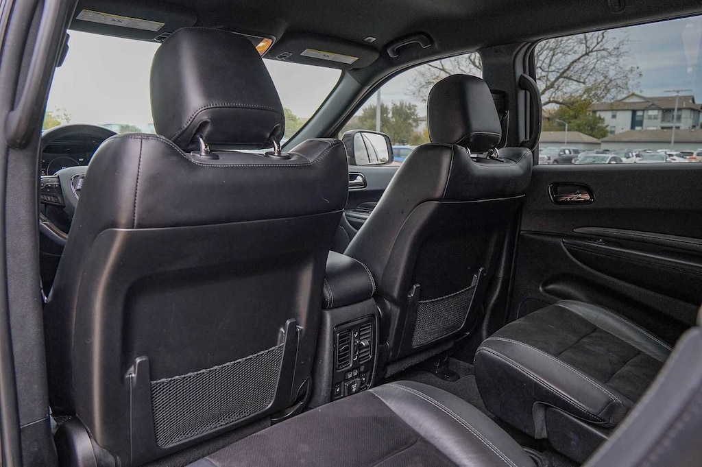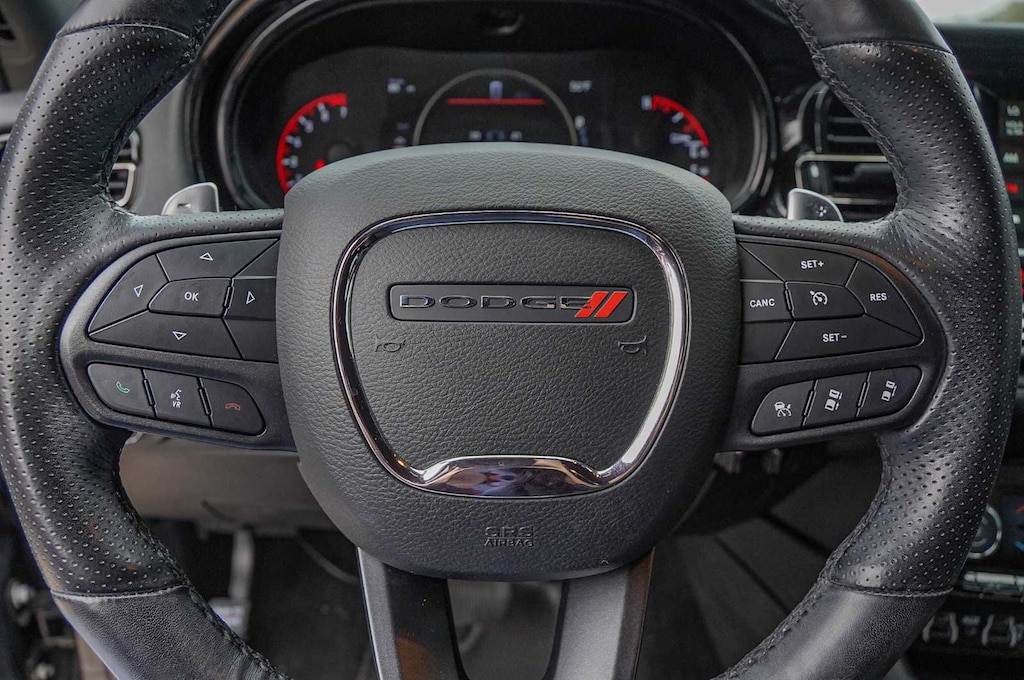 Durango GT Plus, AWD, DB Black Crystal Clearcoat, #2 Seat Foam Cushion, 115V Auxiliary Power Outlet, 180 Amp Alternator, 2nd Row Fold/Tumble Captain Chairs, 2nd Row Mini Console w/Cupholders, 2nd Row Seat Mounted Inboard Armrests, 3.45 Rear Axle Ratio, 3rd row seats: split-bench, 4-Wheel Disc Brakes, 6 Speakers, 6-Passenger Seating, 7 & 4 Pin Wiring Harness, ABS brakes, Adaptive Cruise Control w/Stop, Advanced Brake Assist, Air Conditioning, Alloy wheels, AM/FM radio: SiriusXM, Anti-whiplash front head restraints, Apple CarPlay, Apple CarPlay/Android Auto, Auto-Dimming Exterior Driver Mirror, Auto-dimming Rear-View mirror, Automatic temperature control, Blacktop Package, Body Color Exterior Mirrors, Brake assist, Bright Cargo Area Scuff Pads, Bright Front Door Sill Scuff Pads, Bumpers: body-color, Class IV Receiver Hitch, Cloth Bucket Seats w/Shift Insert, Compass, Delay-off headlights, Driver door bin, Driver vanity mirror, Dual front impact airbags, Dual front side impact airbags, Dual Remote USB Port - Charge Only, Electronic Stability Control, Exterior Mirrors w/Heating Element, Exterior Mirrors w/Memory, Exterior Mirrors w/Supplemental Signals, For More Info, Call 800-643-2112, Four wheel independent suspension, Front anti-roll bar, Front Bucket Seats, Front Center Armrest w/Storage, Front dual zone A/C, Front fog lights, Front reading lights, Full Speed Forward Collision Warning Plus, Fully automatic headlights, Gloss Black Badges, Gloss Black Exterior Mirrors, Google Android Auto, GPS Antenna Input, GT Gloss Black Badging, Heated door mirrors, Heated Front Seats, Heated Second Row Seats, Heated Steering Wheel, Heavy-Duty Engine Cooling, Illuminated entry, Integrated Center Stack Radio, Integrated Voice Command w/Bluetooth, Knee airbag, Lane Departure Warning Plus, Leather steering wheel, Leather Suede Bucket Seats, Low tire pressure warning, Mini Console 3rd Row Floor Mat, Occupant sensing airbag, Outside temperature display, Overhead airbag, Overhead console, Panic alarm, ParkView Rear Back-Up Camera, Passenger door bin, Passenger vanity mirror, Performance Hood, Power 6x9 Multi-Function Foldaway Mirrors, Power 8-Way Driver Memory 6-Way Passenger Seats, Power door mirrors, Power driver seat, Power Driver/Passenger 4-Way Lumbar Adjust, Power Liftgate, Power steering, Power windows, Premium Door Trim Panel, Quick Order Package 2BE GT Plus, Radio data system, Radio: Uconnect 4 w/8.4 Display, Radio/Driver Seat/Mirrors Memory, Rain Sensitive Windshield Wipers, Rear air conditioning, Rear anti-roll bar, Rear Load Leveling Suspension, Rear reading lights, Rear seat center armrest, Rear window defroster, Rear window wiper, Remote keyless entry, Satin Black Dodge Tail Lamp Badge, Security Alarm, SiriusXM Radio Service, SiriusXM Satellite Radio, Speed control, Speed-sensing steering, Speed-Sensitive Wipers, Split Folding Fear Seat, Spoiler, Steering wheel mounted audio controls, Sun Visors w/Illuminated Vanity Mirrors, Tachometer, Telescoping steering wheel, Tilt steering wheel, Traction control, Trailer Brake Control, Trailer Tow Group IV, Trip computer, Tungsten Accent Stitching, Universal Garage Door Opener, USB Host Flip, Variably intermittent wipers, Voltmeter, Wheels: 20 x 8.0 Black Noise Aluminum, Wheels: 20 x 8.0 Fine Silver, Durango GT Plus, AWD, DB Black Crystal Clearcoat.