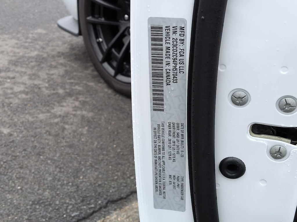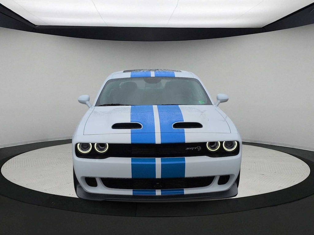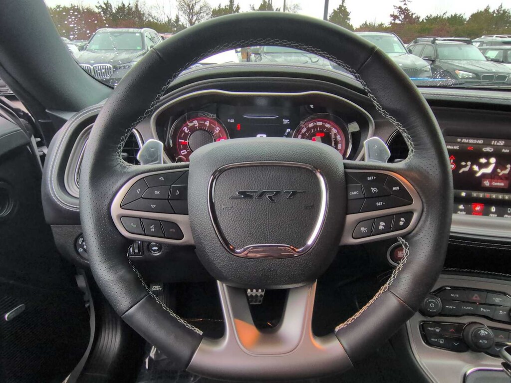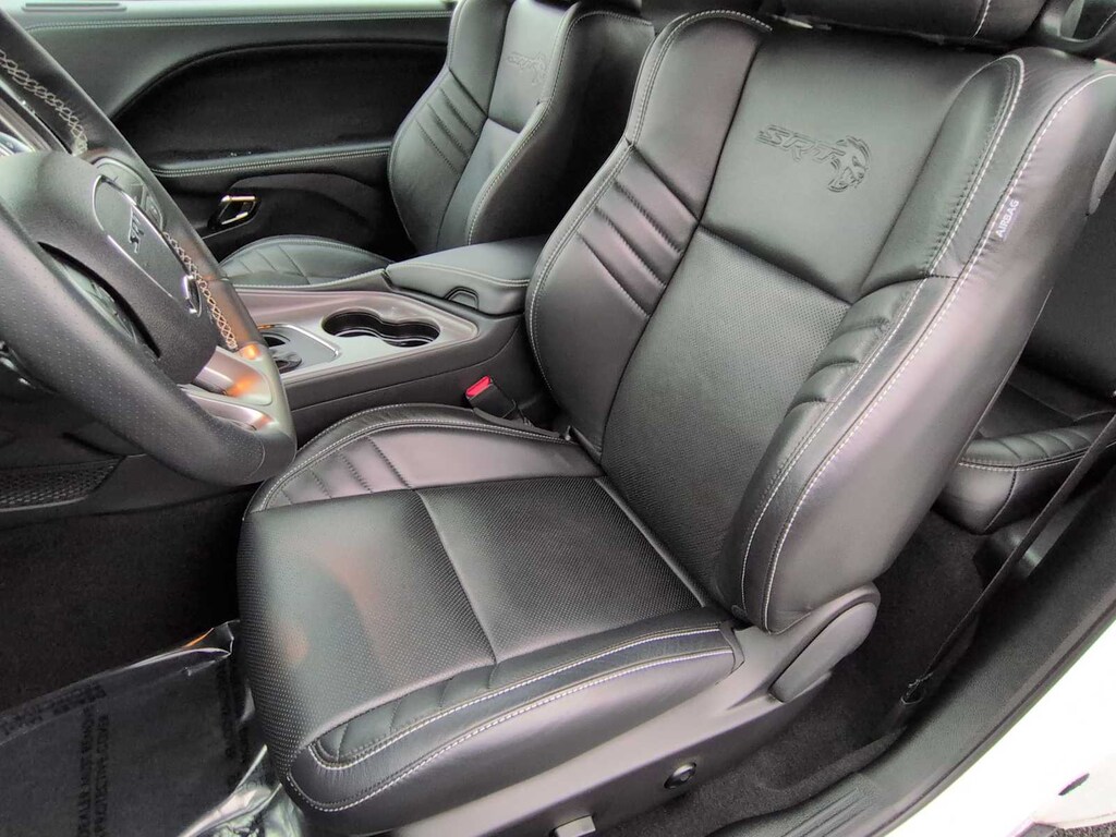 Driver Convenience Group (Blind Spot & Cross Path Detection, Body Color Exterior Mirrors, Exterior Mirrors w/Heating Element, High-Intensity Discharge Headlamps, and Power Multi-Function Foldaway Mirrors), Quick Order Package 26K Hellcat Jailbreak (Black Seat Belts and Jailbreak IP Badge), Technology Group (Auto High Beam Headlamp Control and Rain Sensitive Windshield Wipers), 1-Yr SiriusXM Guardian Trial, 4-Wheel Disc Brakes, 4G LTE Wi-Fi Hot Spot, 6 Speakers, 8.4 Touchscreen Display, ABS brakes, Adaptive suspension, Air Conditioning, Alloy wheels, AM/FM radio: SiriusXM, Anti-whiplash front head restraints, Apple CarPlay, Apple CarPlay/Android Auto, Auto-dimming Rear-View mirror, Automatic temperature control, Blue Dual Stripe, Brake assist, Bumpers: body-color, Compass, Compass Gauge, Delay-off headlights, Driver door bin, Driver vanity mirror, Dual front impact airbags, Dual front side impact airbags, Electronic Stability Control, Emergency communication system: SiriusXM Guardian, For Details, Visit DriveUconnect.com, For More Info, Call 800-643-2112, Four wheel independent suspension, Front anti-roll bar, Front Bucket Seats, Front Center Armrest, Front dual zone A/C, Front License Plate Bracket, Front reading lights, Fully automatic headlights, Garage door transmitter, Google Android Auto, GPS Antenna Input, HD Radio, Heated door mirrors, Heated Front Seats, Heated front seats, Heated Steering Wheel, Heated steering wheel, Illuminated entry, Integrated Center Stack Radio, Integrated Voice Command w/Bluetooth, Leather Shift Knob, Low tire pressure warning, Manuf Statement of Origin, Media Hub (2 USB, AUX), Outside temperature display, Overhead airbag, Overhead console, Panic alarm, ParkView Rear Back-Up Camera, Passenger door bin, Passenger vanity mirror, Power door mirrors, Power driver seat, Power steering, Power Sunroof, Power windows, Radio data system, Radio: Uconnect 4C w/8.4 Display, Rear anti-roll bar, Rear reading lights, Rear seat center armrest, Rear window defroster, Remote keyless entry, Security system, Shark Fin Antenna, SiriusXM Radio Service, SiriusXM Satellite Radio, Speed control, Speed-sensing steering, Split folding rear seat, Spoiler, Sport steering wheel, SRT Hellcat Logo Houndstooth Seats, Steering wheel mounted audio controls, Tachometer, Telescoping steering wheel, Tilt steering wheel, Traction control, Trip computer, USB Host Flip, Variably intermittent wipers, and Wheels: 20 x 9.5 Low Gloss Black DraG.