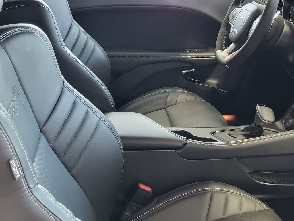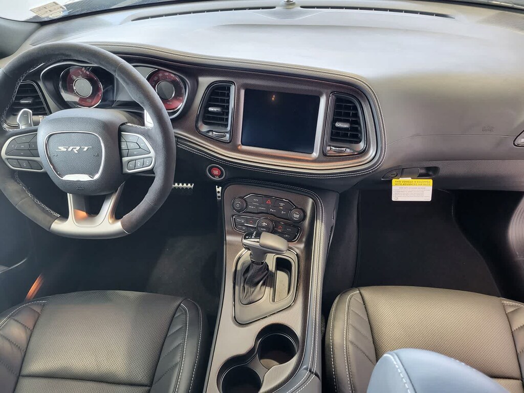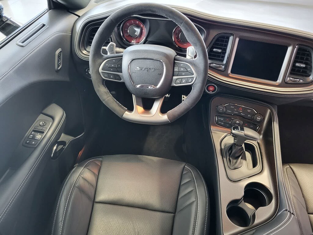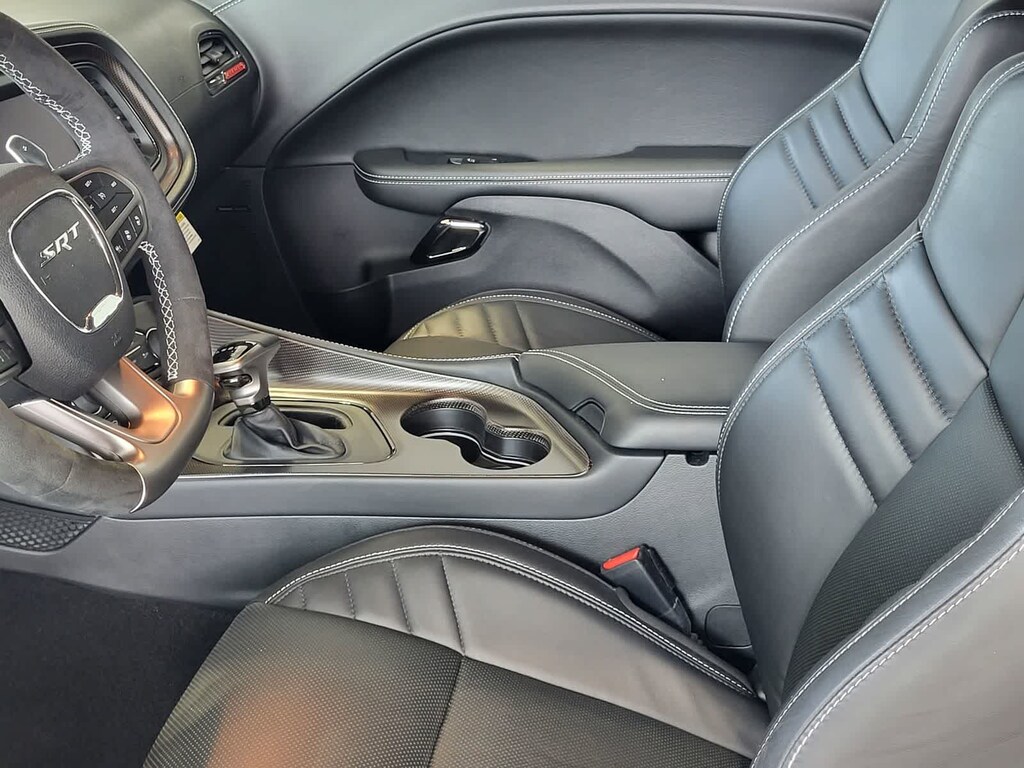 BLACK, HELLCAT LOGO LAGUNA LEATHER SEAT Power Tilt/Telescope Steering Column, Premium Laguna Door Trim Panel, Premium-Stitched Dash Panel, Ventilated Front Seats, Radio/Driver Seat/Mirrors Memory, TRANSMISSION: 8-SPEED AUTOMATIC (HP90) AutoStick Automatic Transmission, Remote Start System, 2.62 Rear Axle Ratio, Tip Start, Steering Wheel Mounted Shift Control, Auto Leather Wrapped Shift Knob, harman/kardon® AUDIO GROUP W/SUBWOOFER Trunk Mounted Subwoofer, 18 Speakers Premium Audio System, Surround Sound, harman/kardon® GreenEdge Amp, DRIVER CONVENIENCE GROUP Blind Spot & Cross Path Detection, High Intensity Discharge Headlamps, Power Multi-Function Foldaway Mirrors, RADIO: UCONNECT 4C NAV W/8.4 DISPLAY SiriusXM Traffic Plus, GPS Navigation, All VP4R Radios, SiriusXM Travel Link, All Radio Equipped Vehicles, TECHNOLOGY GROUP Rain Sensitive Windshield Wipers, Auto High Beam Headlamp Control, ENGINE: 6.2L SUPERCHARGED HEMI V8 SRT (STD). Dodge SRT Hellcat Jailbreak with Pitch Black Clearcoat exterior and Black interior features a 8 Cylinder Engine with 717 HP at 6000 RPM*.