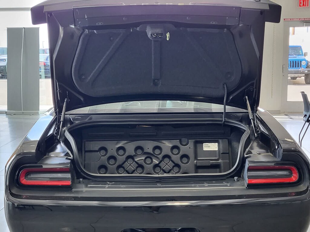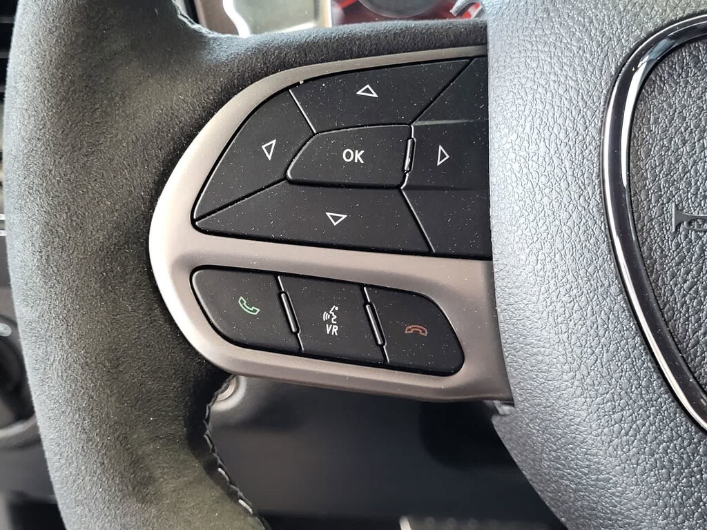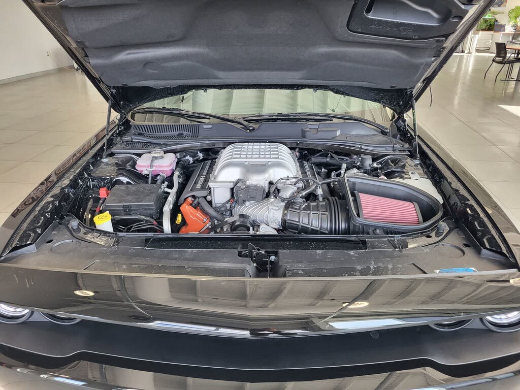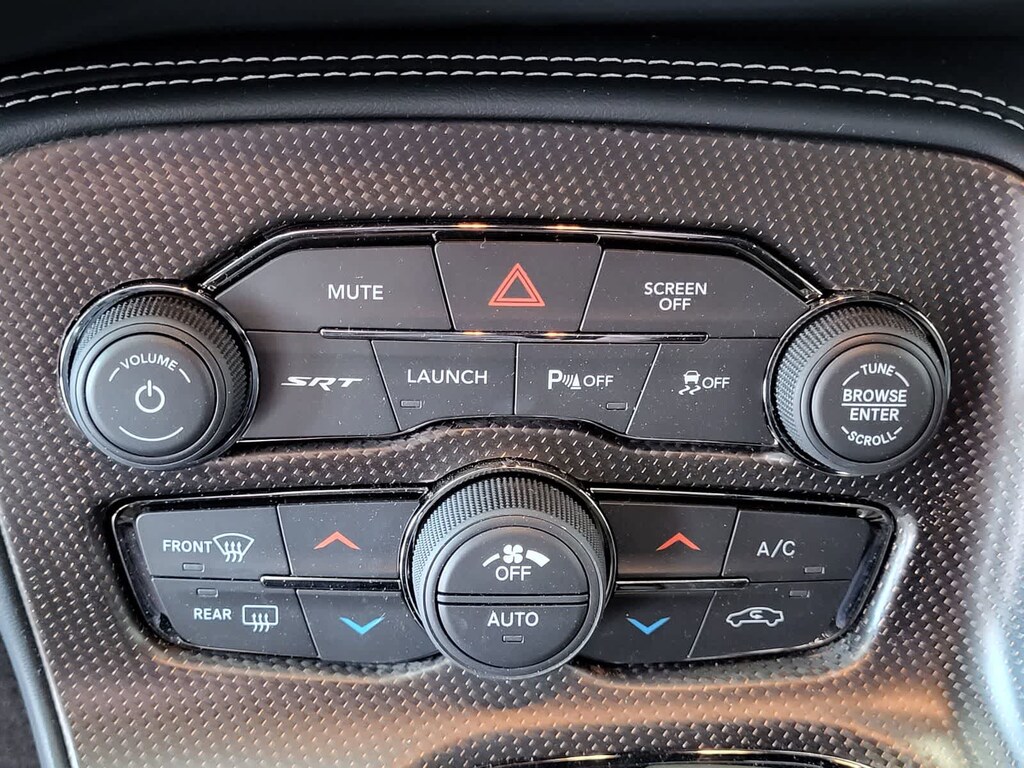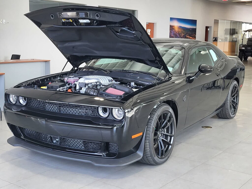 BLACK, HELLCAT LOGO LAGUNA LEATHER SEAT Power Tilt/Telescope Steering Column, Premium Laguna Door Trim Panel, Premium-Stitched Dash Panel, Ventilated Front Seats, Radio/Driver Seat/Mirrors Memory, TRANSMISSION: 8-SPEED AUTOMATIC (HP90) AutoStick Automatic Transmission, Remote Start System, 2.62 Rear Axle Ratio, Tip Start, Steering Wheel Mounted Shift Control, Auto Leather Wrapped Shift Knob, harman/kardon® AUDIO GROUP W/SUBWOOFER Trunk Mounted Subwoofer, 18 Speakers Premium Audio System, Surround Sound, harman/kardon® GreenEdge Amp, DRIVER CONVENIENCE GROUP Blind Spot & Cross Path Detection, High Intensity Discharge Headlamps, Power Multi-Function Foldaway Mirrors, RADIO: UCONNECT 4C NAV W/8.4 DISPLAY SiriusXM Traffic Plus, GPS Navigation, All VP4R Radios, SiriusXM Travel Link, All Radio Equipped Vehicles, TECHNOLOGY GROUP Rain Sensitive Windshield Wipers, Auto High Beam Headlamp Control, ENGINE: 6.2L SUPERCHARGED HEMI V8 SRT (STD). Dodge SRT Hellcat Jailbreak with Pitch Black Clearcoat exterior and Black interior features a 8 Cylinder Engine with 717 HP at 6000 RPM*.