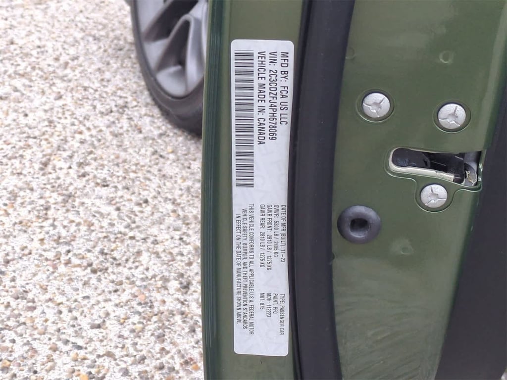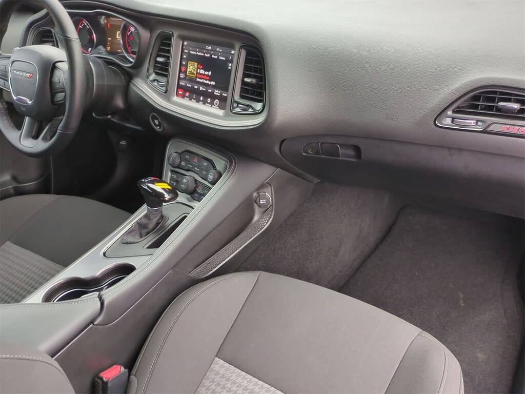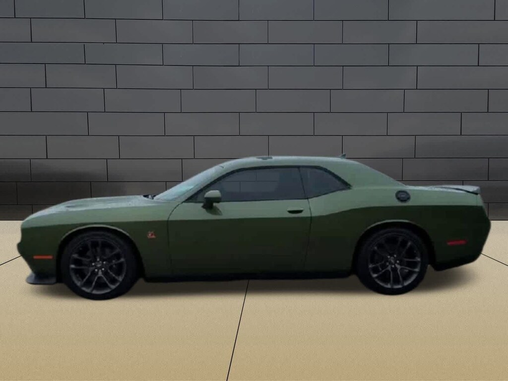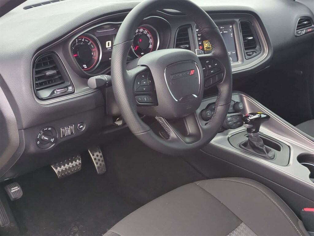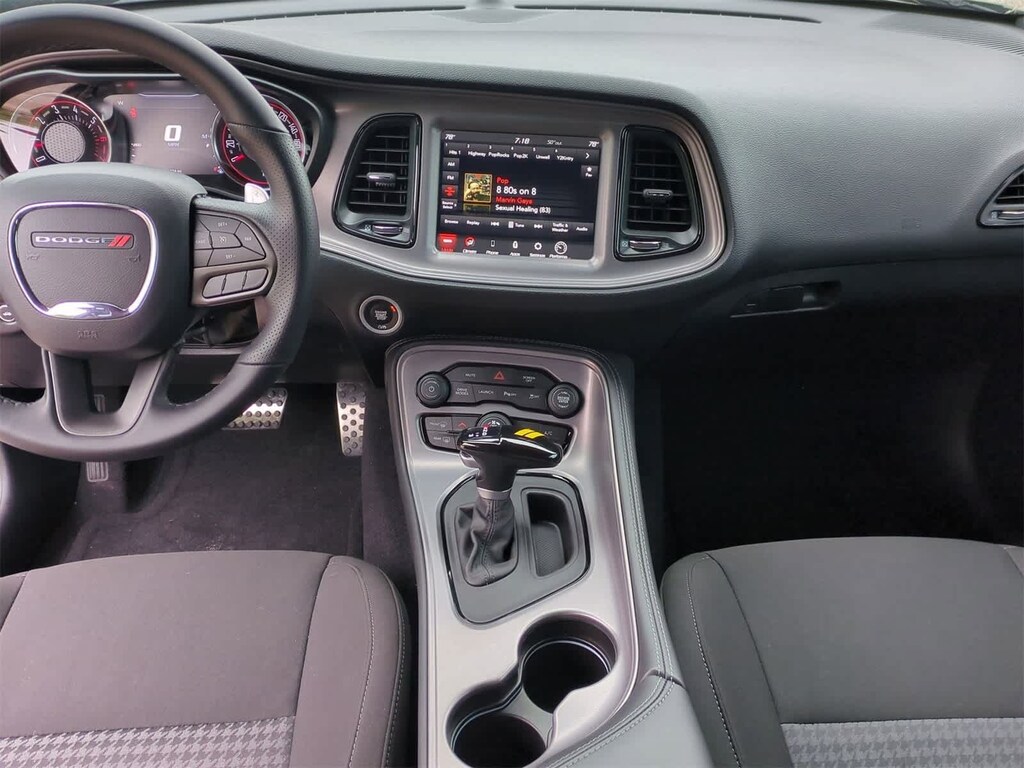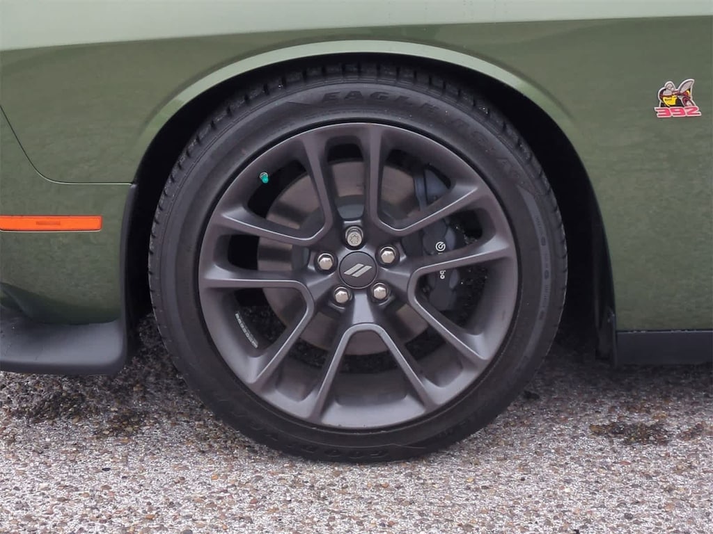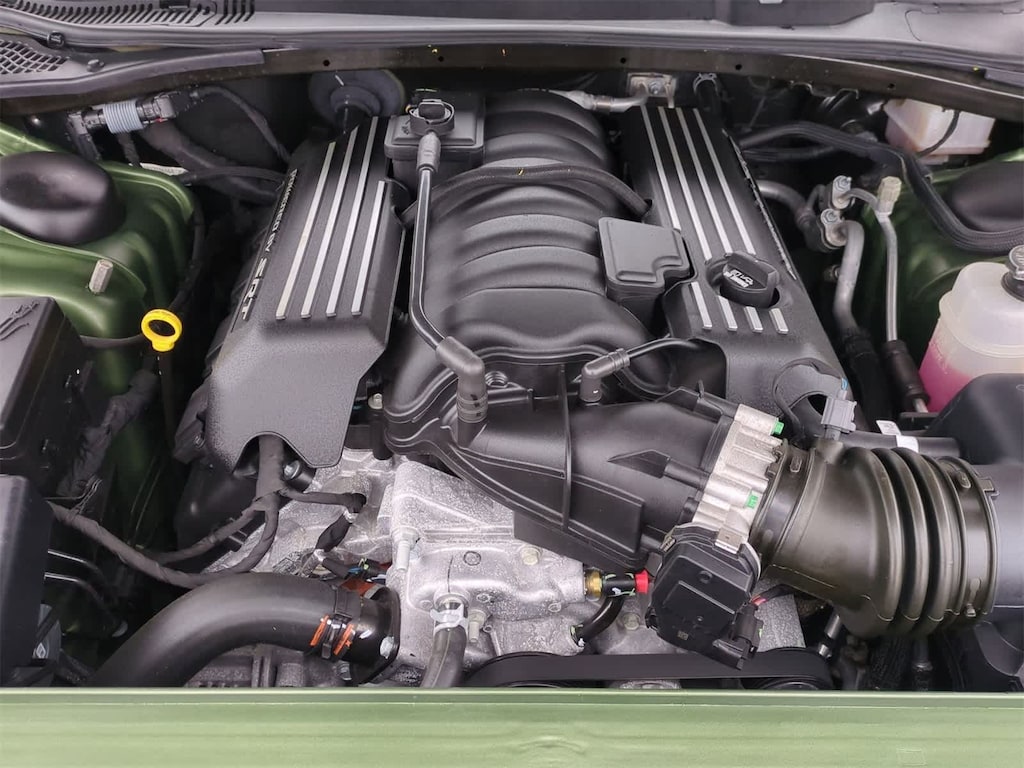 TRANSMISSION: 8-SPEED AUTOMATIC (8HP70) AutoStick Automatic Transmission, Remote Start System, Tip Start, Steering Wheel Mounted Shift Control, Auto Leather Wrapped Shift Knob, ENGINE: 6.4L V8 SRT HEMI MDS. 2023 Dodge Challenger with F8 Green exterior and Black interior features a 8 Cylinder Engine with 485 HP at 6100 RPM*.