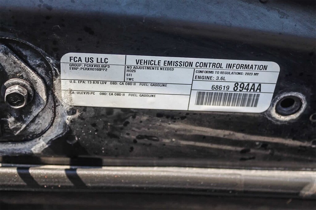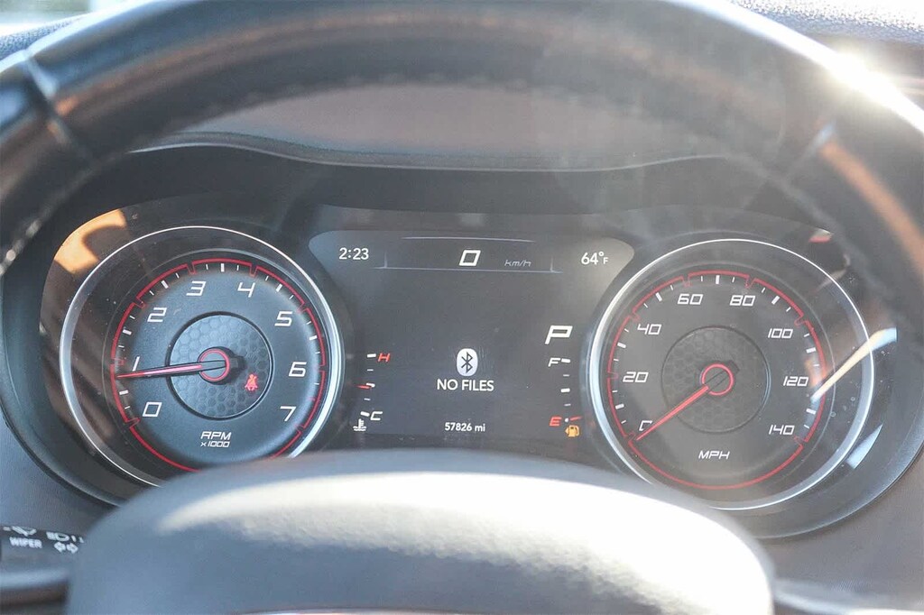 Black Cloth, 1-Yr SiriusXM Guardian Trial, 2-Piece Shark Fin Antenna, 4-Wheel Disc Brakes, 4G LTE Wi-Fi Hot Spot, 6 Speakers, 8.4 Touchscreen Display, ABS brakes, Air Conditioning, Alloy wheels, AM/FM radio: SiriusXM, Anti-whiplash front head restraints, Apple CarPlay, Apple CarPlay/Android Auto, Auto-dimming Rear-View mirror, Automatic temperature control, Brake assist, Bumpers: body-color, Cloth Performance Seats, Compass, Delay-off headlights, Driver door bin, Driver vanity mirror, Dual front impact airbags, Dual front side impact airbags, Electronic Stability Control, Emergency communication system: SiriusXM Guardian, For Details, Visit DriveUconnect.com, Four wheel independent suspension, Front anti-roll bar, Front Bucket Seats, Front Center Armrest, Front dual zone A/C, Front License Plate Bracket, Front reading lights, Fully automatic headlights, Garage door transmitter: HomeLink, Google Android Auto, GPS Antenna Input, HD Radio, Heated door mirrors, Illuminated entry, Integrated Center Stack Radio, Integrated Voice Command w/Bluetooth, Knee airbag, Leather Shift Knob, Low tire pressure warning, Manufacturers Statement of Origin, Media Hub (2 USB, AUX), Occupant sensing airbag, Outside temperature display, Overhead airbag, Overhead console, Panic alarm, ParkView Rear Back-Up Camera, Passenger door bin, Passenger vanity mirror, Power 2-Way Driver Lumbar Adjust, Power 8-Way Driver Seat, Power door mirrors, Power driver seat, Power steering, Power windows, Quick Order Package 2EH, Radio: Uconnect 4C w/8.4 Display, Rear anti-roll bar, Rear Armrest w/Cupholder Seat, Rear reading lights, Rear seat center armrest, Rear window defroster, Remote keyless entry, Speed control, Speed-Sensitive Wipers, Split folding rear seat, Spoiler, Steering wheel mounted audio controls, Tachometer, Telescoping steering wheel, Tilt steering wheel, Traction control, Trip computer, USB Host Flip, Variably intermittent wipers, Wheels: 20 x 8 Satin Carbon Painted, Black Cloth.