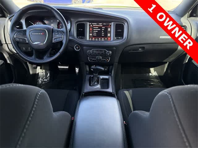 THIS VEHICLE ALSO IS EQUIPPED WITH THE FOLLOWING OPTIONS AND FEATURES: Blacktop Package (Black 1-Piece Performance Spoiler, Black Badge, Black Dodge Grille Badge, Gloss Black I/P Cluster Trim Rings, Rhombi 2-Pc Wheel Center Cap, Satin Black Charger Decklid Badge, Satin Black Dodge Tail Lamp Badge, and Wheels: 20 x 8 Black Noise Painted), Quick Order Package 2EH, Black Cloth, 1-Yr SiriusXM Guardian Trial, 2-Piece Shark Fin Antenna, 4-Wheel Disc Brakes, 4G LTE Wi-Fi Hot Spot, 6 Speakers, 8.4 Touchscreen Display, ABS brakes, Air Conditioning, Alloy wheels, AM/FM radio: SiriusXM, Anti-whiplash front head restraints, Apple CarPlay, Apple CarPlay/Android Auto, Auto-dimming Rear-View mirror, Automatic temperature control, Brake assist, Bumpers: body-color, Cloth Performance Seats, Compass, Delay-off headlights, Driver door bin, Driver vanity mirror, Dual front impact airbags, Dual front side impact airbags, Electronic Stability Control, Emergency communication system: SiriusXM Guardian, For Details, Visit DriveUconnect.com, Four wheel independent suspension, Front anti-roll bar, Front Bucket Seats, Front Center Armrest, Front dual zone A/C, Front License Plate Bracket, Front reading lights, Fully automatic headlights, Garage door transmitter: HomeLink, Google Android Auto, GPS Antenna Input, HD Radio, Heated door mirrors, Illuminated entry, Integrated Center Stack Radio, Integrated Voice Command w/Bluetooth, Knee airbag, Leather Shift Knob, Low tire pressure warning, Manufacturers Statement of Origin, Media Hub (2 USB, AUX), Occupant sensing airbag, Outside temperature display, Overhead airbag, Overhead console, Panic alarm, ParkView Rear Back-Up Camera, Passenger door bin, Passenger vanity mirror, Power 2-Way Driver Lumbar Adjust, Power 8-Way Driver Seat, Power door mirrors, Power driver seat, Power steering, Power windows, Radio: Uconnect 4C w/8.4 Display, Rear anti-roll bar, Rear Armrest w/Cupholder Seat, Rear reading lights, Rear seat center armrest, Rear window defroster, Remote keyless entry, Speed control, Speed-Sensitive Wipers, Split folding rear seat, Spoiler, Steering wheel mounted audio controls, Tachometer, Telescoping steering wheel, Tilt steering wheel, Traction control, Trip computer, USB Host Flip, Variably intermittent wipers, and Wheels: 20 x 8 Satin Carbon PainteD.
