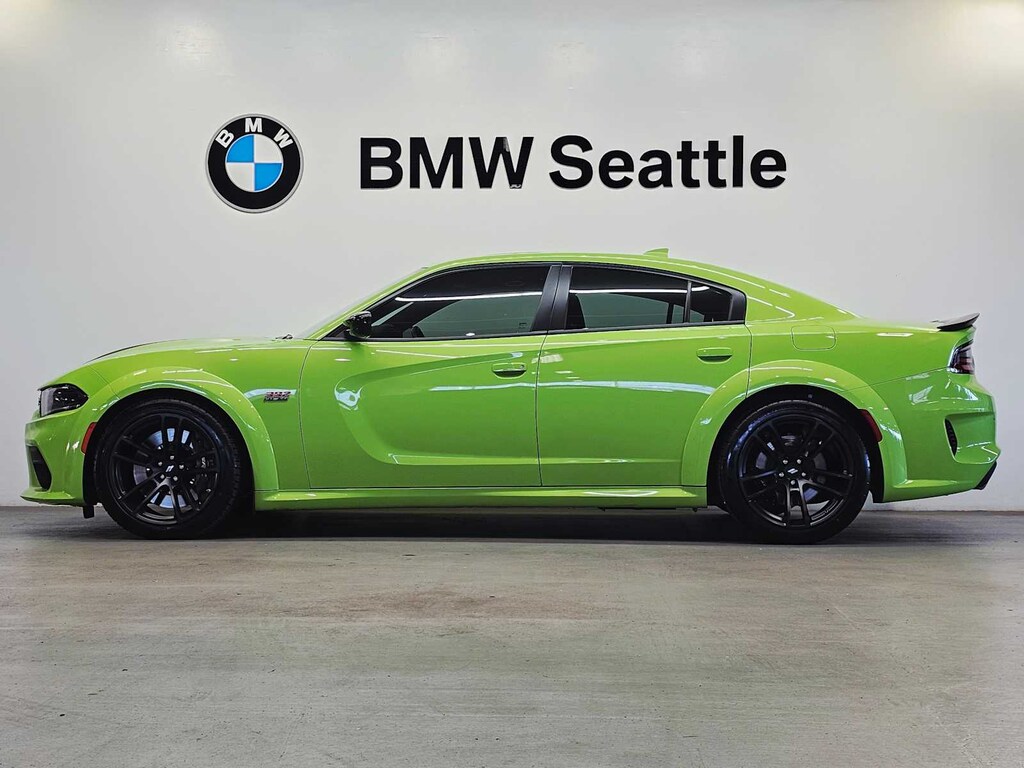 QUICK ORDER PACKAGE 21V SCAT PACK WIDEBODY Engine: 6.4L V8 SRT HEMI MDS, Transmission: 8-Speed Automatic (8HP70), Flat-Bottom Steering Wheel, Performance Shift Indicator, Widebody Package, All Speed Traction Control, Brembo 6-Pot Fixed Front Caliper Brakes, Adaptive Damping Suspension, Pirelli Brand Tires, Widebody Competition Suspension, Body Color Fender Flares, harman/kardon® AUDIO GROUP 19 harman/kardon® GreenEdge Speakers, Surround Sound, harman/kardon® GreenEdge Amp, POWER SUNROOF, TRANSMISSION: 8-SPEED AUTOMATIC (8HP70) (STD), ENGINE: 6.4L V8 SRT HEMI MDS (STD). Dodge Scat Pack Widebody with Sublime Metallic Clearcoat exterior and Black interior features a 8 Cylinder Engine with 485 HP at 6100 RPM*.