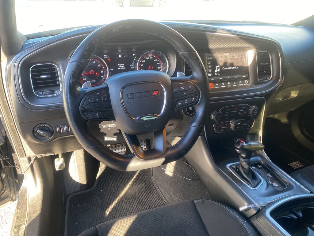 Empower yourself in our One Owner, Accident Free 2023 Dodge Charger Scat Pack Widebody Sedan with the Plus Pack thats an imposing presence in Pitch Black! Motivated by a 6.4 Liter 392 HEMI V8 offering 485hp to an 8 Speed Automatic transmission for revved-up quarter-mile times. This Rear Wheel Drive sedan also has an adaptive damping competition suspension with Brembo brakes for high-performance handling, and it scores nearly 24mpg on the highway. A bold widebody kit helps our Charger grab attention with LED headlights/fog lamps, a performance grille, a black rear spoiler, a functional hood scoop, an active exhaust with dual outlets, 20-inch satin carbon alloy wheels, spoiler, exclusive graphics, and our Plus Packs multifunction mirrors.
