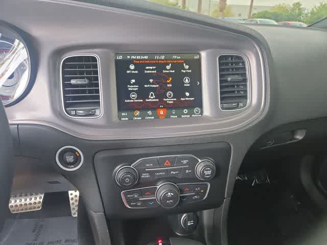 This 2023 Dodge Charger R/T Scat Pack Widebody in Pitch Black Clearcoat, features Quick Order Package 21V Scat Pack Widebody (All Speed Traction Control, Body Color Fender Flares, Brembo 6-Pot Fixed Front Caliper Brakes, Flat-Bottom Steering Wheel, Performance Shift Indicator, Wheels: 20 x 11 Carbon Black Aluminum, and Widebody Competition Suspension), Widebody Package, 1-Yr SiriusXM Guardian Trial, 2-Piece Shark Fin Antenna, 4-Wheel Disc Brakes, 4G LTE Wi-Fi Hot Spot, 6 Speakers, 8.4 Touchscreen Display, ABS brakes, Adaptive Damping Suspension (DISC), Air Conditioning, Alloy wheels, AM/FM radio: SiriusXM, Anti-whiplash front head restraints, Apple CarPlay, Apple CarPlay/Android Auto, Auto-dimming Rear-View mirror, Automatic temperature control, Brake assist, Bumpers: body-color, Cloth Performance Seats w/Heat, Compass, Delay-off headlights, Driver door bin, Driver vanity mirror, Dual front impact airbags, Dual front side impact airbags, Electronic Stability Control, Emergency communication system: SiriusXM Guardian, For Details, Visit DriveUconnect.com, Four wheel independent suspension, Front anti-roll bar, Front Bucket Seats, Front Center Armrest, Front dual zone A/C, Front fog lights, Front reading lights, Fully automatic headlights, Garage door transmitter: HomeLink, Google Android Auto, GPS Antenna Input, HD Radio, Heated door mirrors, Heated Front Seats, Heated front seats, Heated steering wheel, Illuminated entry, Integrated Center Stack Radio, Integrated Voice Command w/Bluetooth, Knee airbag, Leather Shift Knob, Low tire pressure warning, Media Hub (2 USB, AUX), Occupant sensing airbag, Outside temperature display, Overhead airbag, Overhead console, Panic alarm, ParkView Rear Back-Up Camera, Passenger door bin, Passenger vanity mirror, Power 2-Way Driver Lumbar Adjust, Power door mirrors, Power driver seat, Power steering, Power windows, Radio: Uconnect 4C w/8.4 Display, Rear anti-roll bar, Rear Armrest w/Cupholder Seat, Rear reading lights, Rear seat center armrest, Rear window defroster, Remote keyless entry, Security system, Speed control, Speed-Sensitive Wipers, Split folding rear seat, Spoiler, Sport steering wheel, Steering wheel mounted audio controls, Tachometer, Telescoping steering wheel, Tilt steering wheel, Traction control, Trip computer, USB Host Flip, Variably intermittent wipers, and Wheels: 20 x 9 Lo Gloss Granite Crystal: